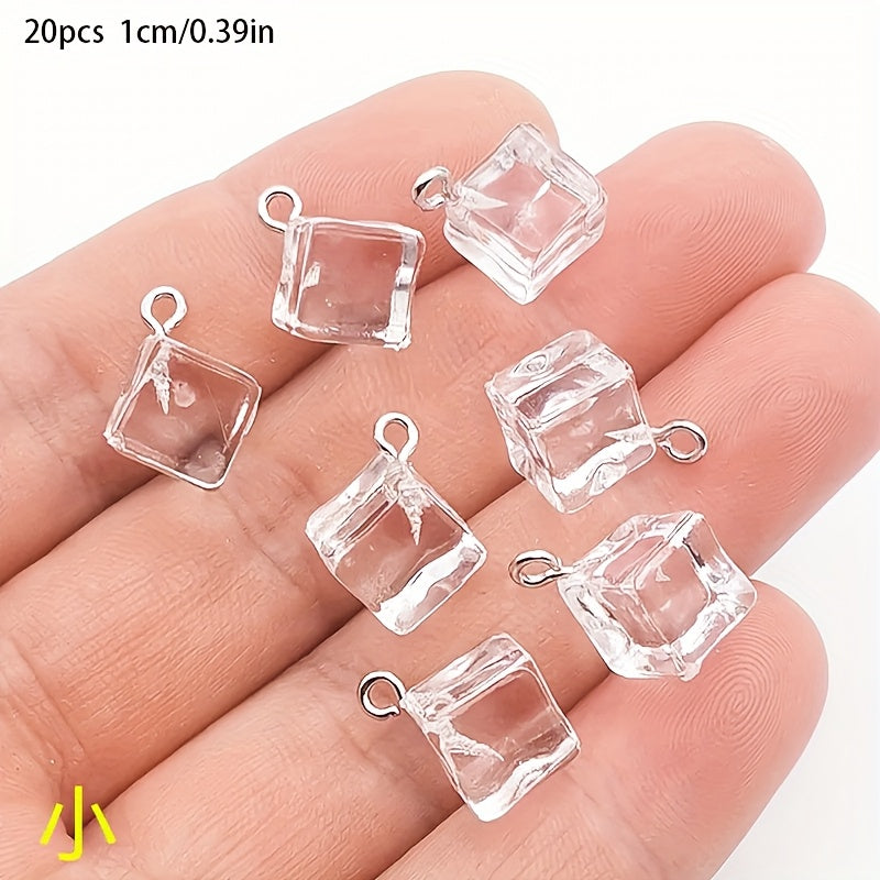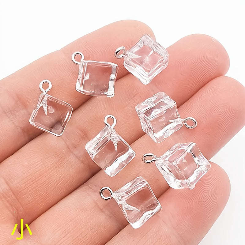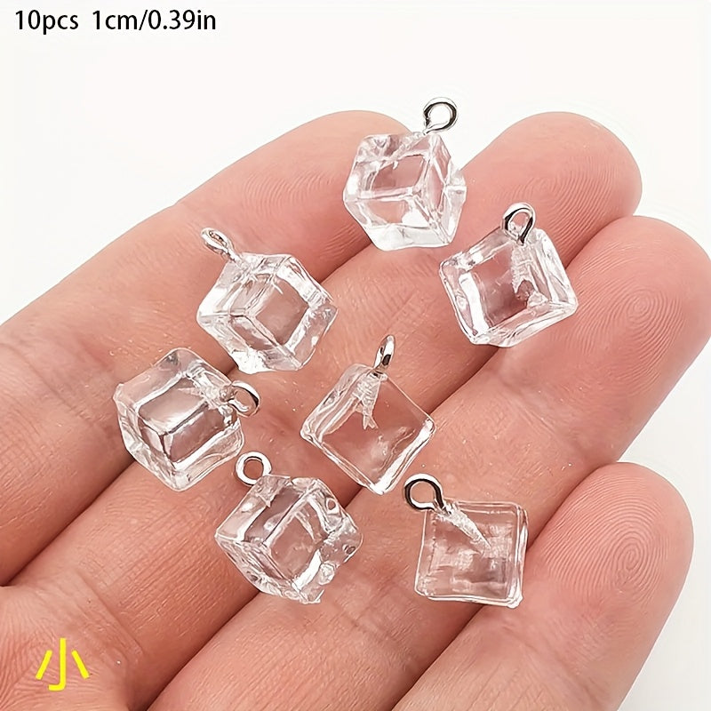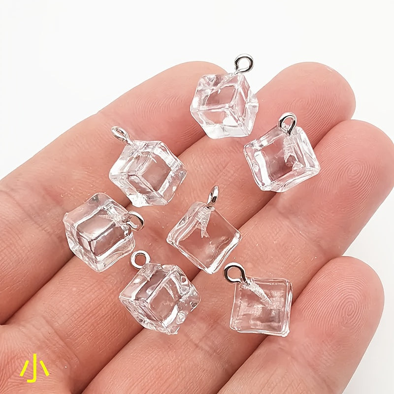Create stunning jewelry with these clear resin ice cube charms. Each charm measures 10mm and is perfect for crafting unique pieces.