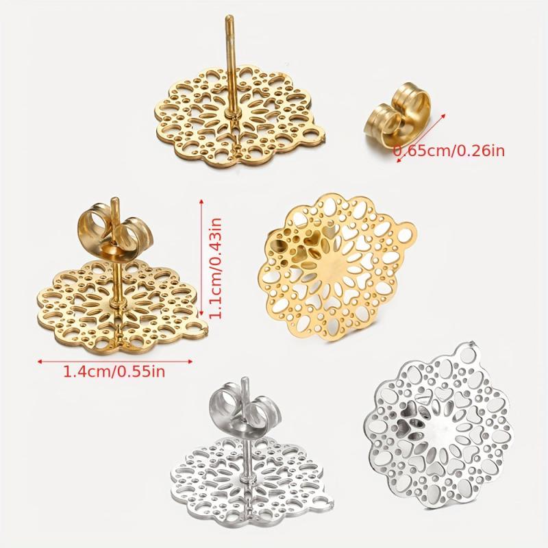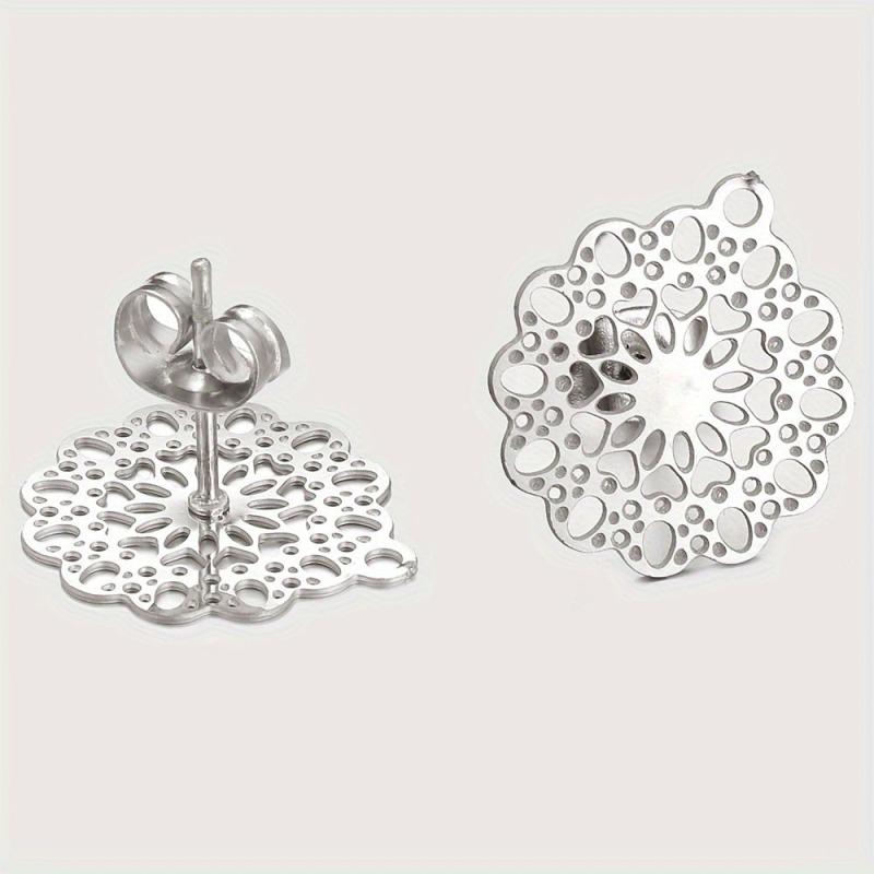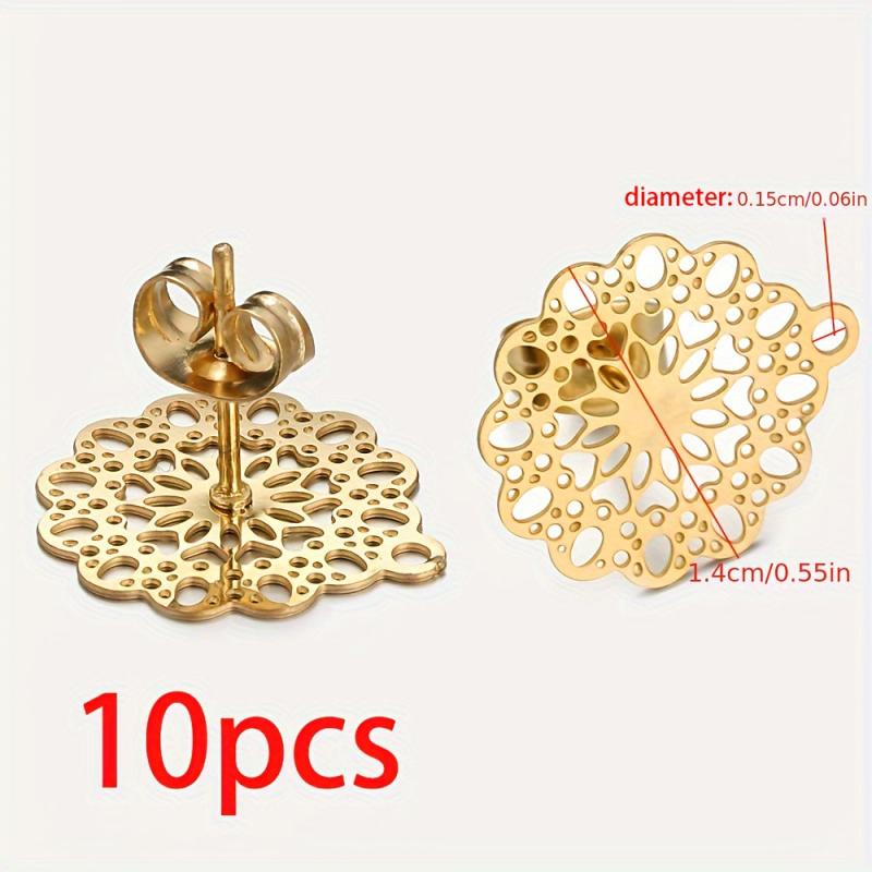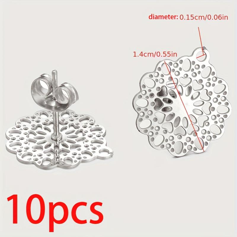 10 Vintage Hollow Flower Stud Earrings Stainless Steel Bohemian Style DIY Parts