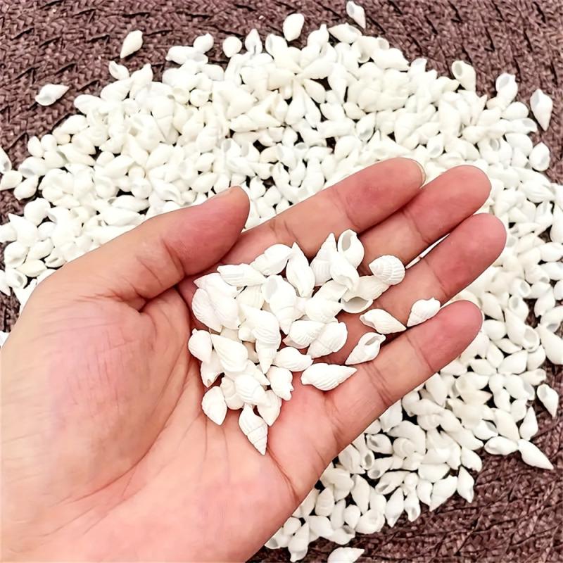 These mini conch beads are perfect for resin crafts, candle making, home decoration, parties, weddings, and aqua projects. Each bead measures 7-12mm and has no hole for unique applications.