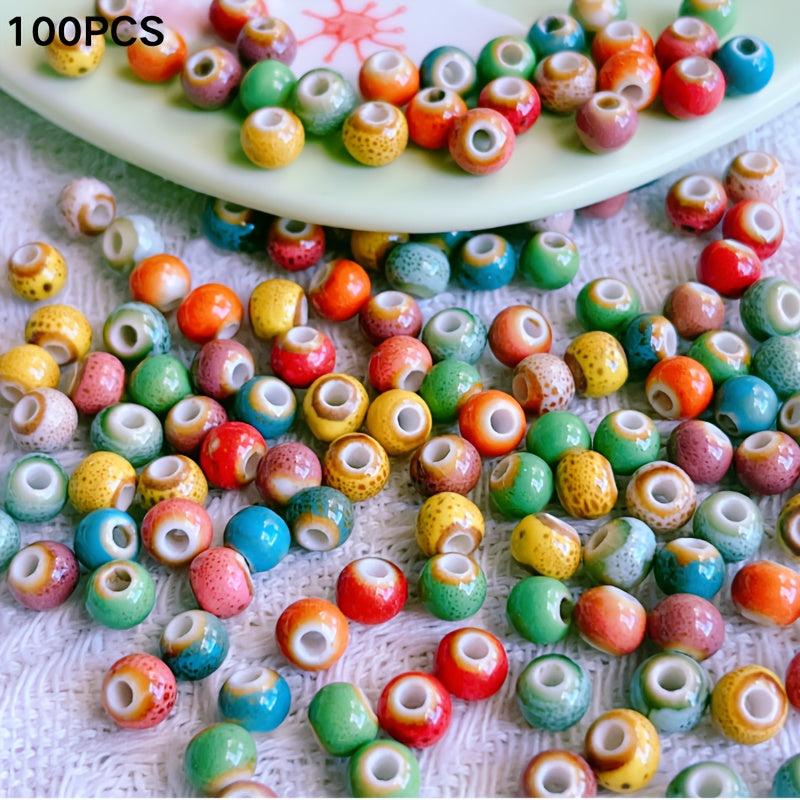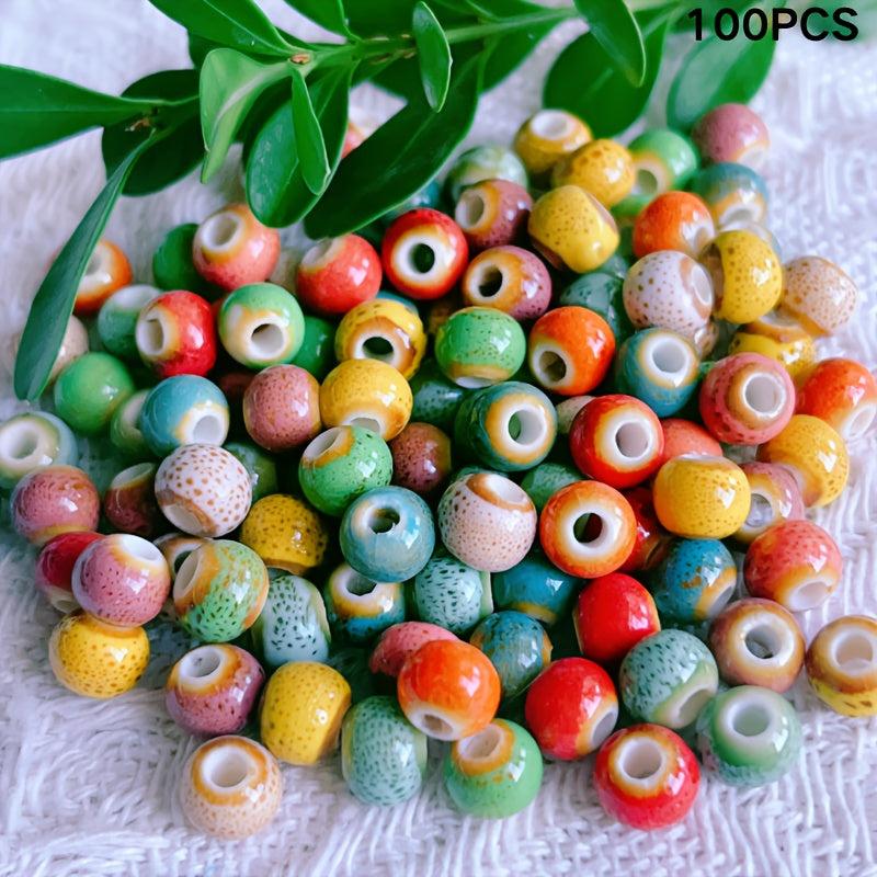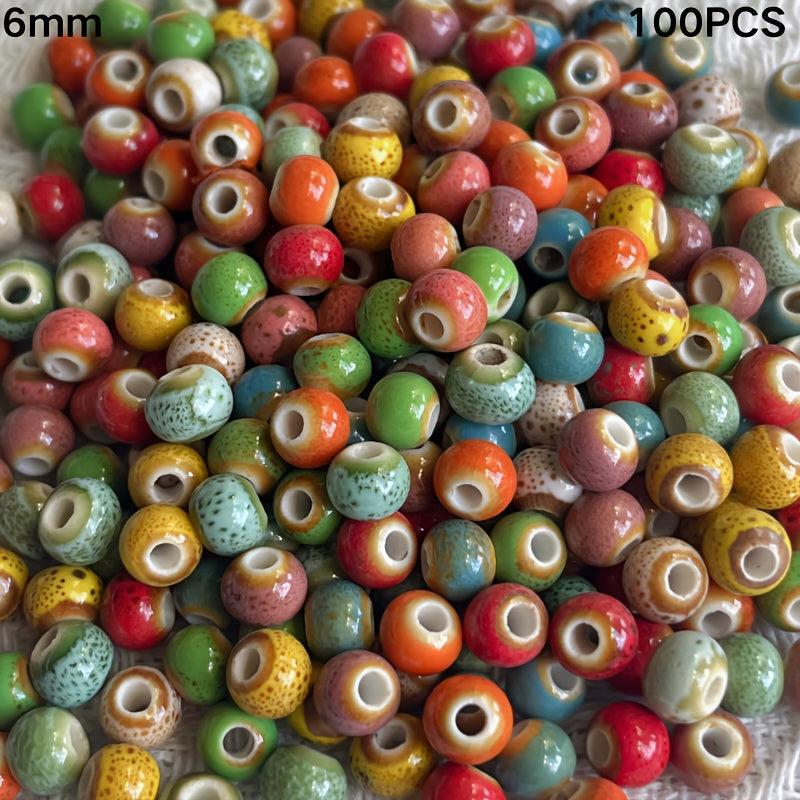 Add a touch of bohemian style to your jewelry creations with this pack of 100 multicolor glazed ceramic beads. Perfect for DIY projects, these 6mm beads are versatile and easy to work with.