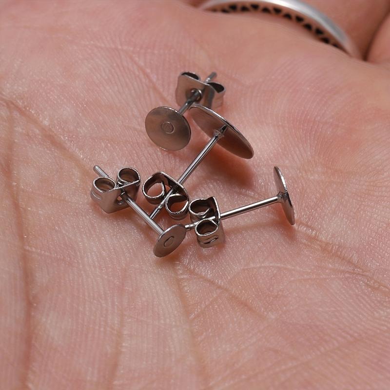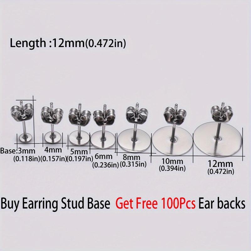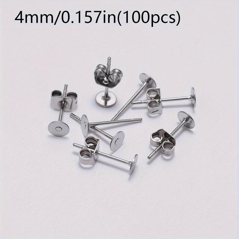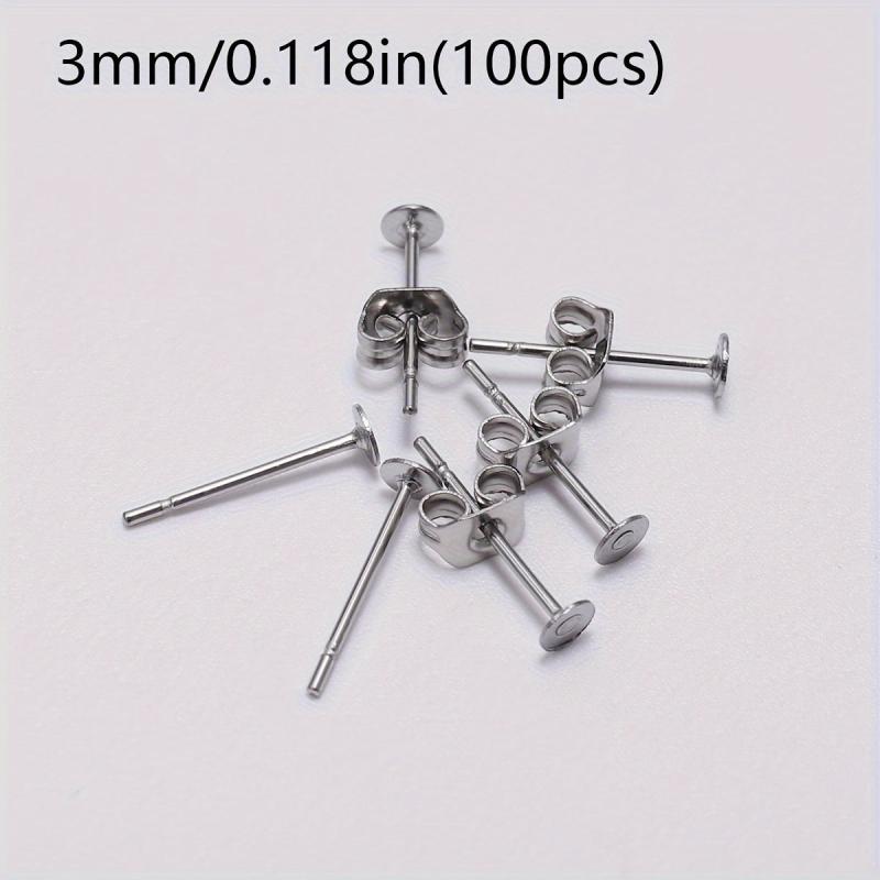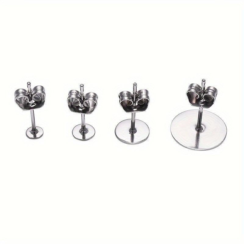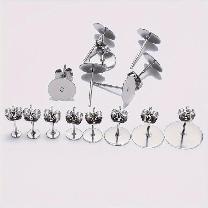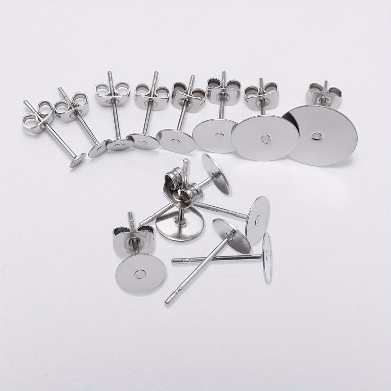 Get this set of 100 stainless steel flat round stud earring settings with butterfly ear plugs for creating your unique earrings.