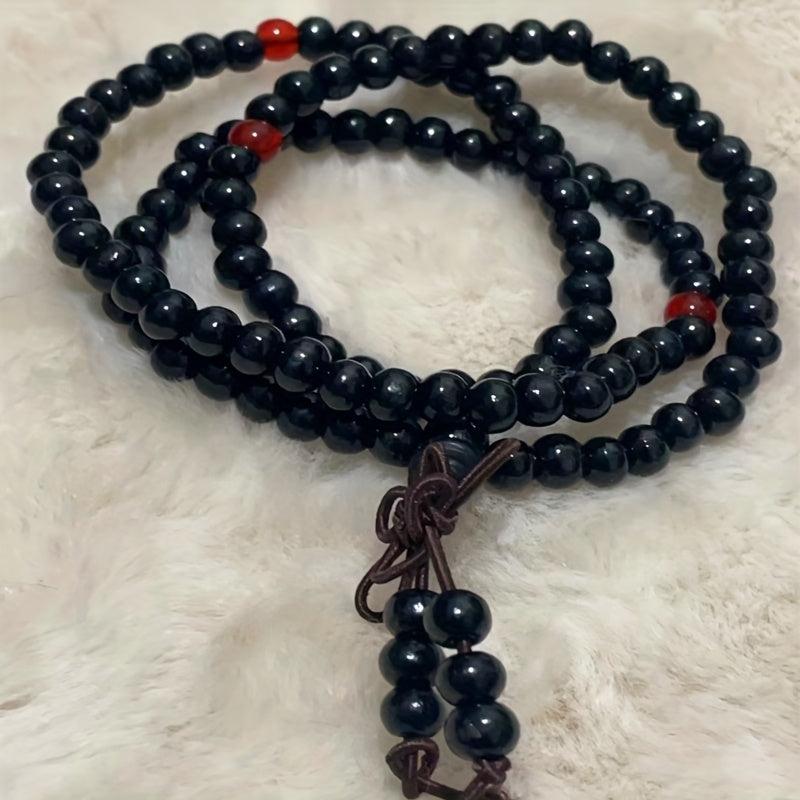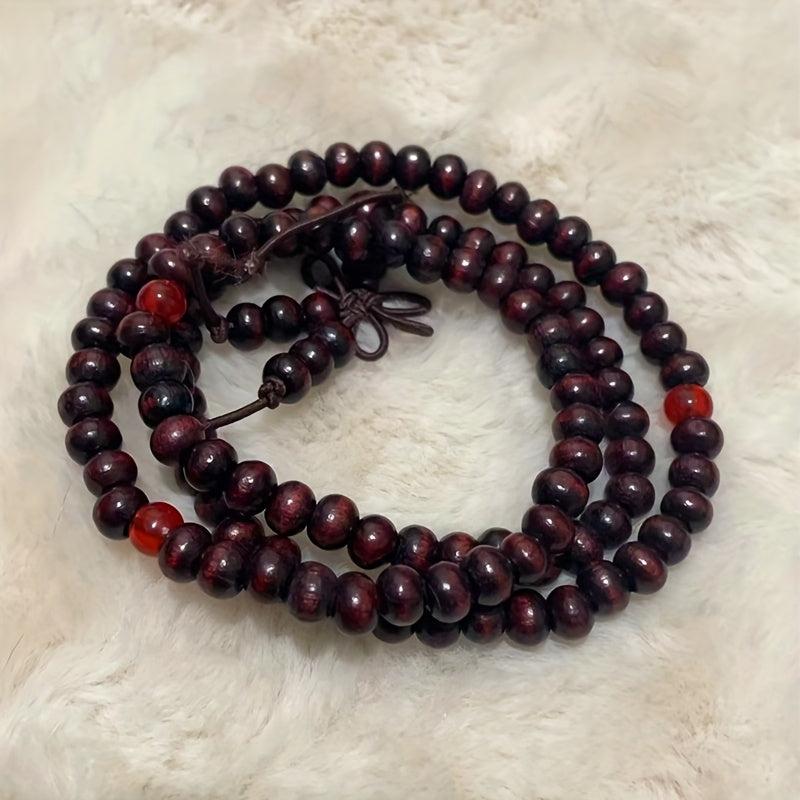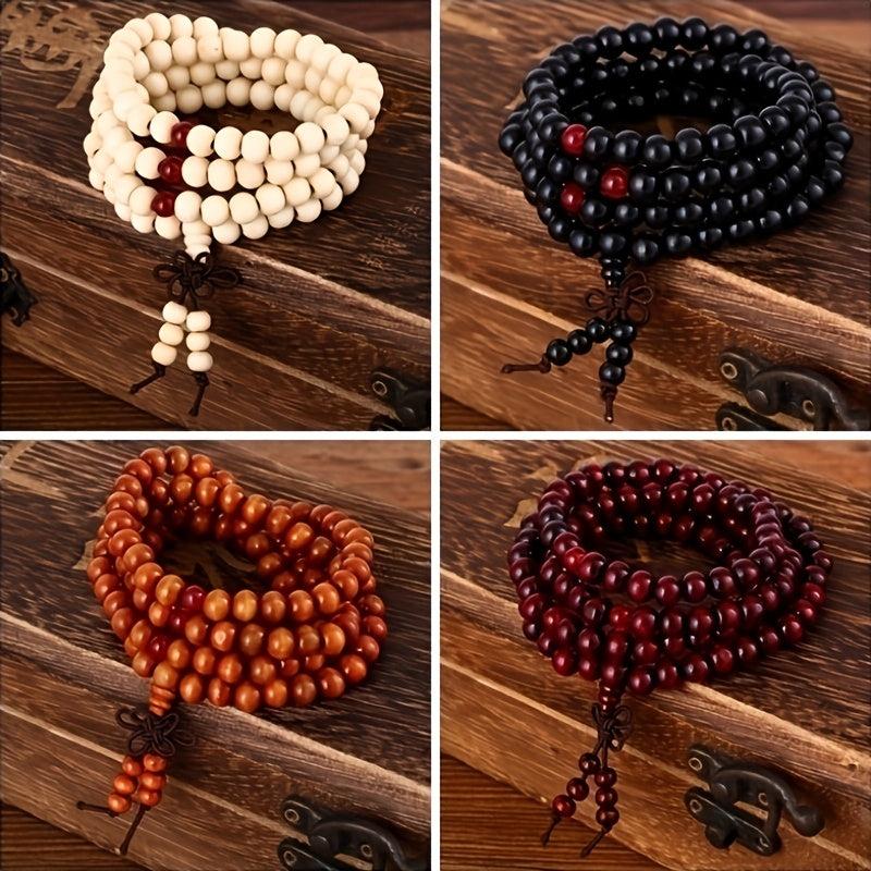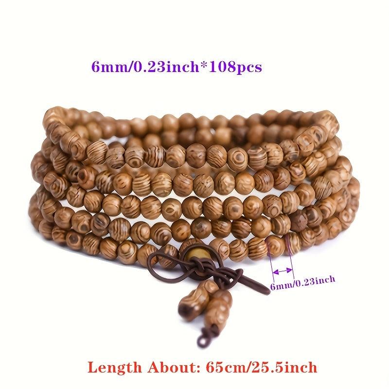 This bracelet features natural wooden beads suitable for meditation, yoga, and spiritual healing. Waterproof and ideal as a gift for friends.