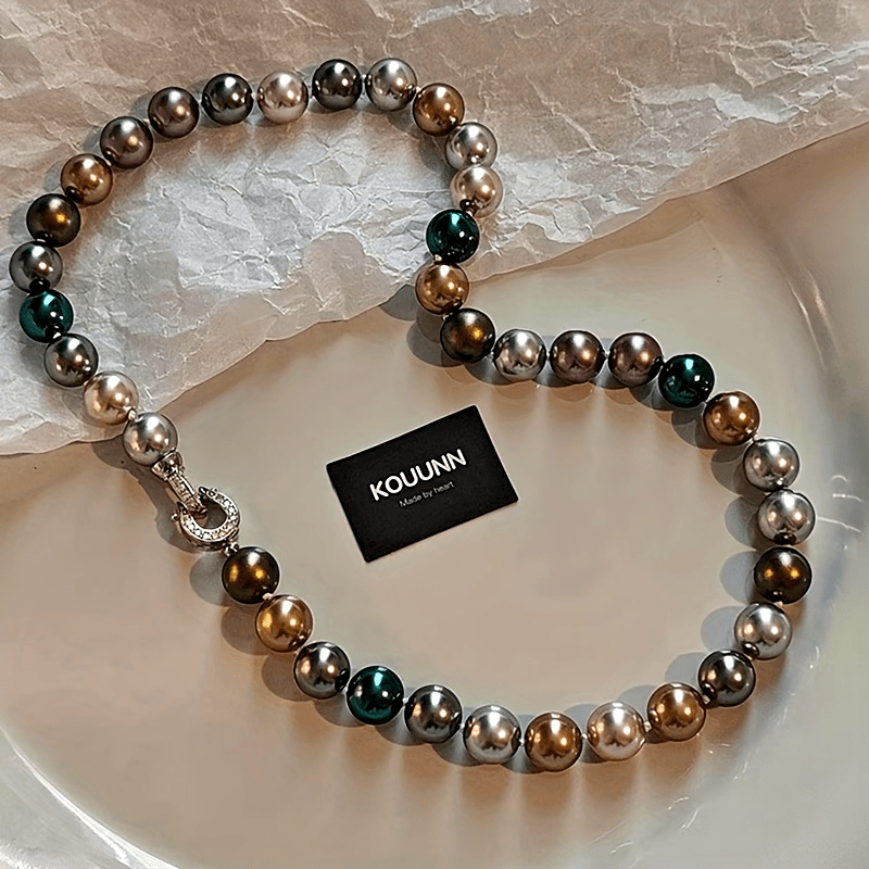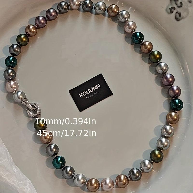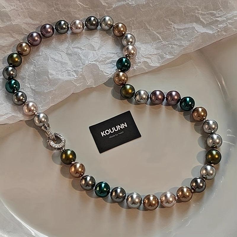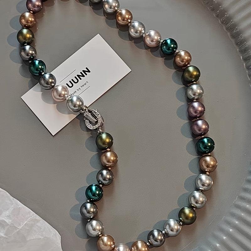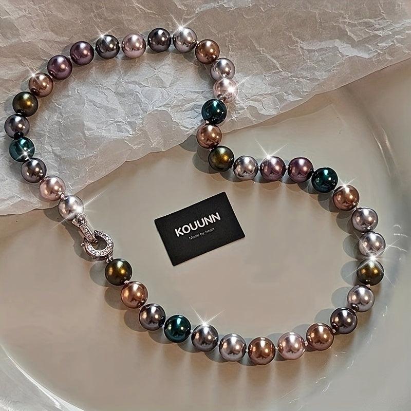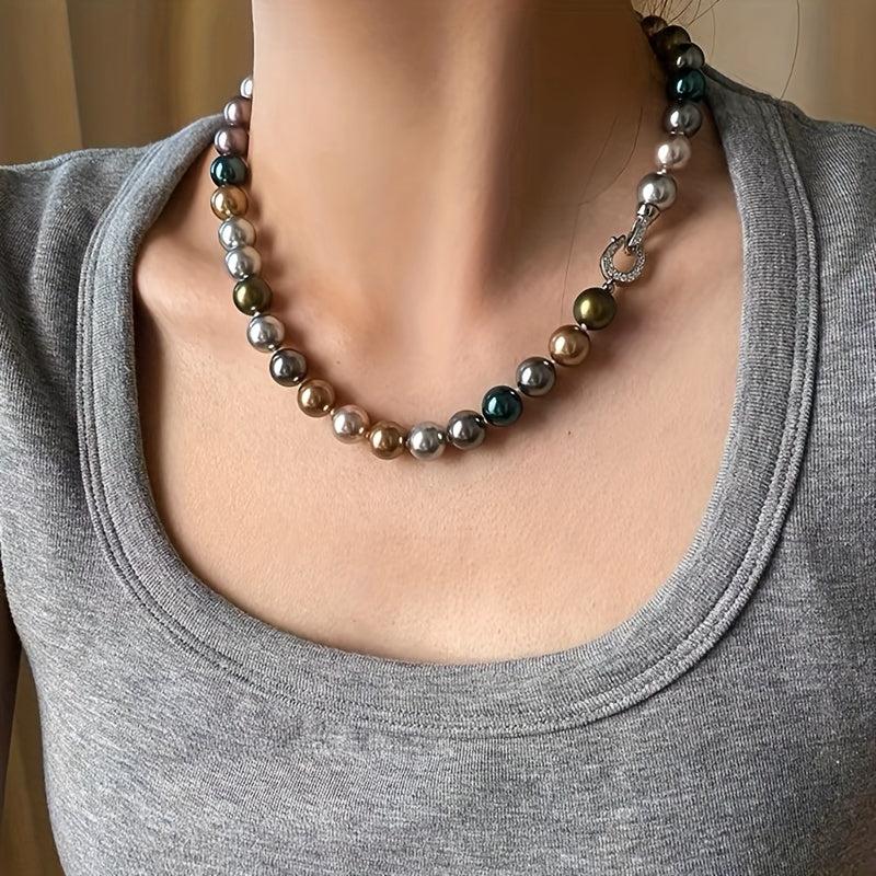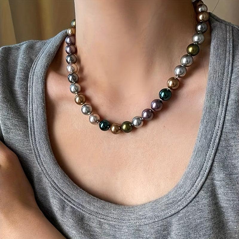 This stunning necklace features 10mm multicolor shell pearls that resemble the December birthstone. Perfect for music festivals or everyday wear.