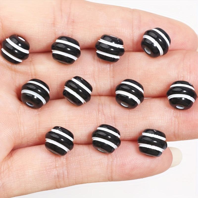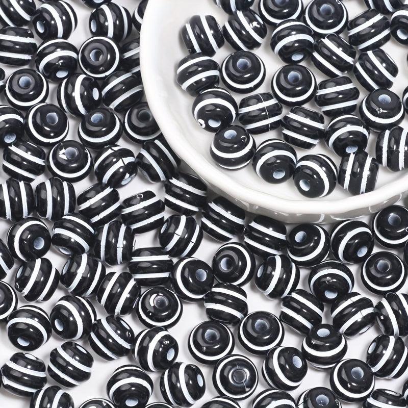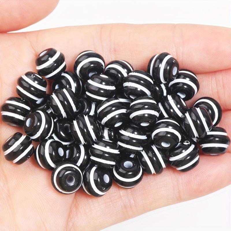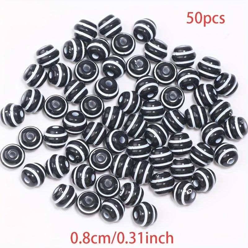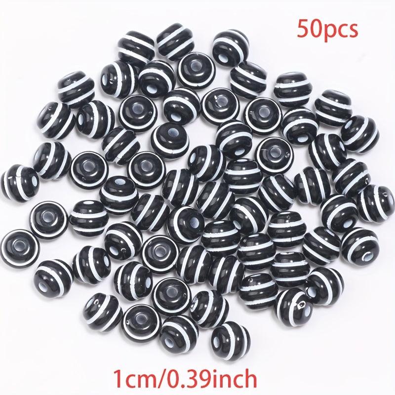 Create stunning jewelry pieces with this set of 50 striped acrylic round beads. Perfect for bracelets, necklaces, earrings, keychains, and other accessories.