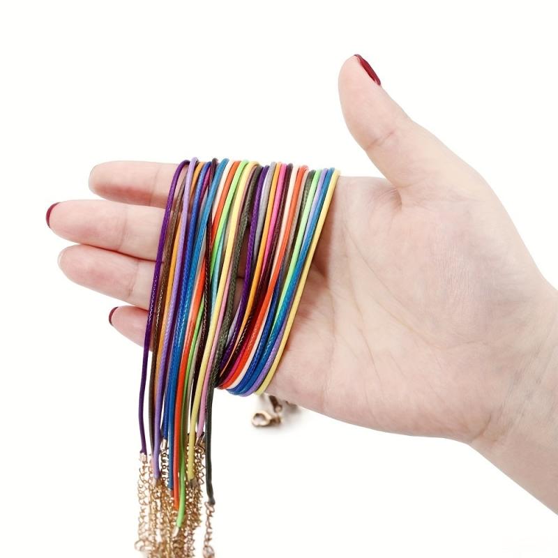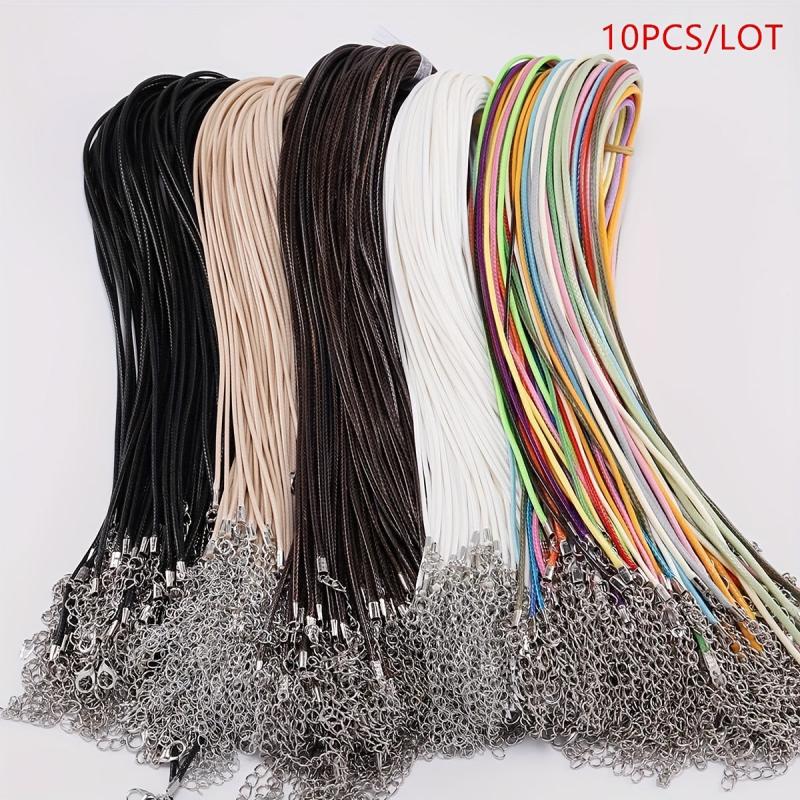 This set includes 10 pieces of 1.5mm diameter leather rope necklace buckles, perfect for DIY jewelry making. The adjustable braided rope allows you to create necklaces and bracelets.