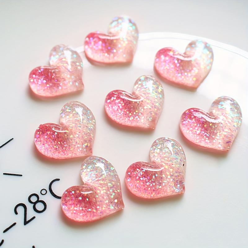 Add a touch of sparkle to your DIY jewelry projects with this set of 3D heart shape resin charms. Each pack includes 10 pieces in 5 different ombre colors, perfect for creating unique and eye-catching pieces.