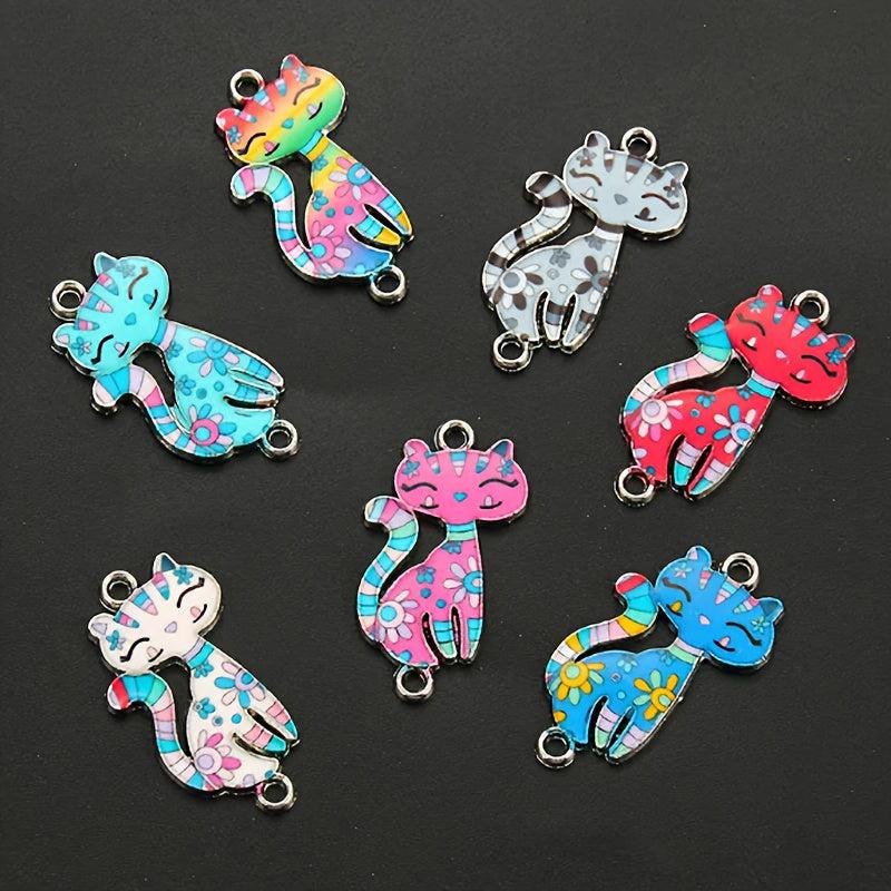 Easily create unique bracelets and necklaces with these colorful cat pendants. Perfect for DIY jewelry making projects.