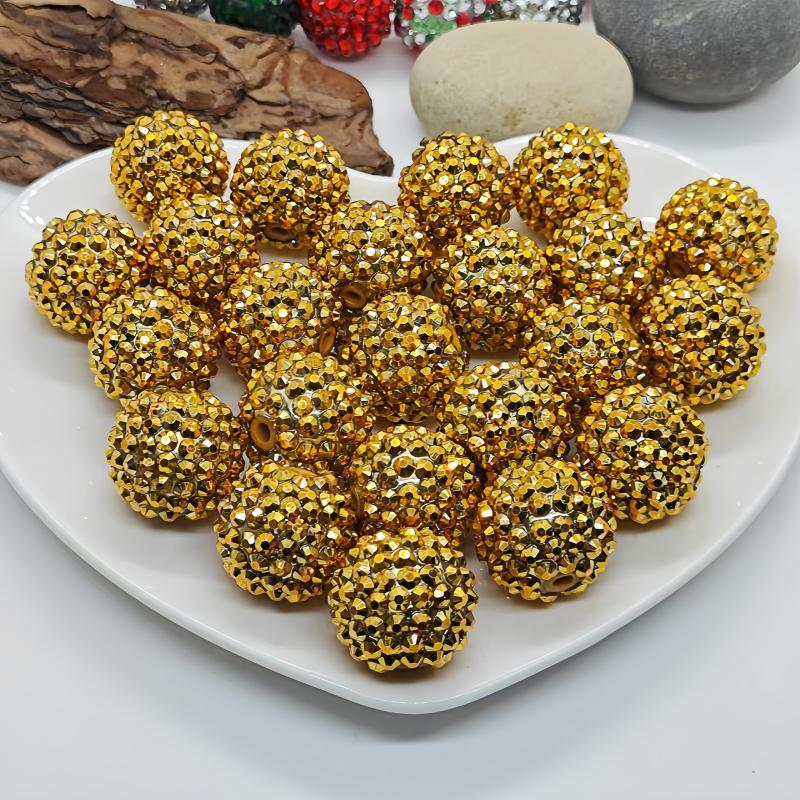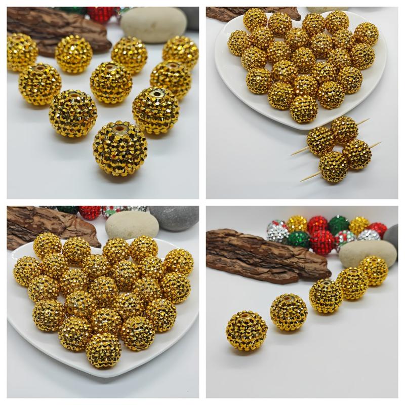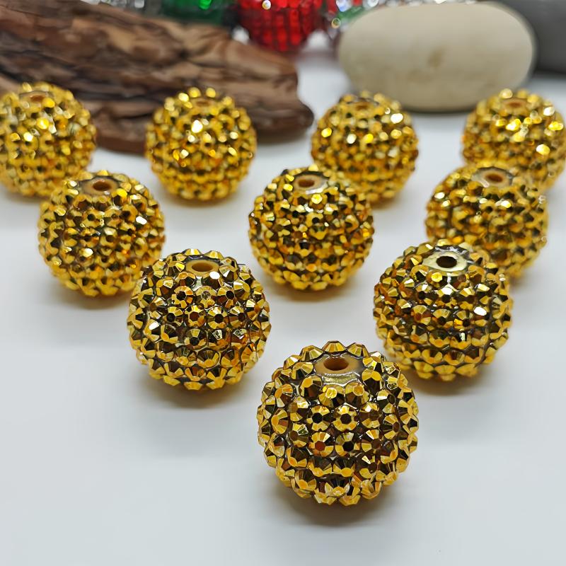 Add a touch of glamour to your Christmas decorations with these golden glitter crystal rhinestone yewberry balls. Each pack contains 10 pieces of 20mm beads to adorn your holiday decor.