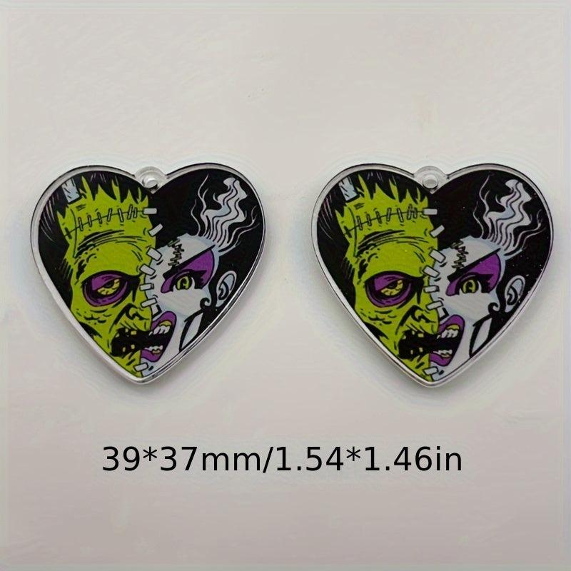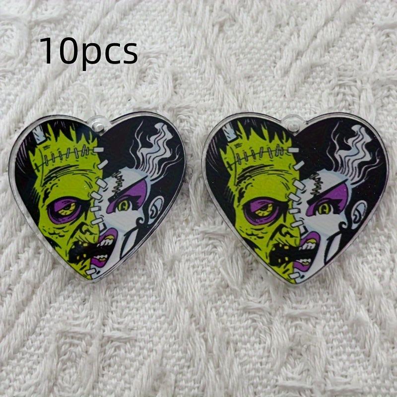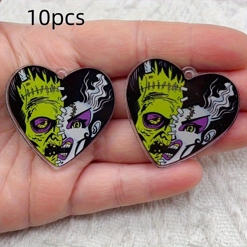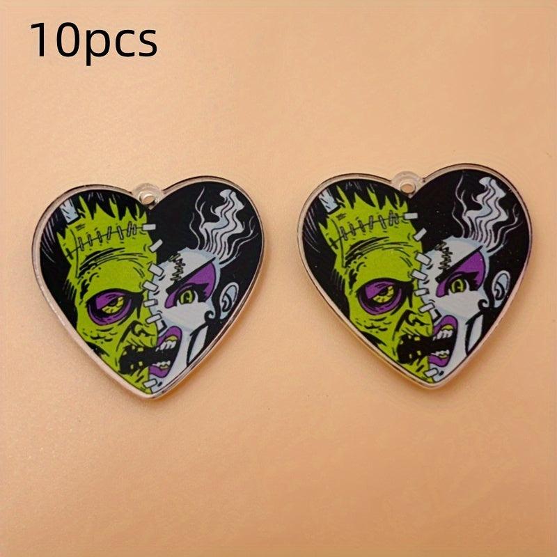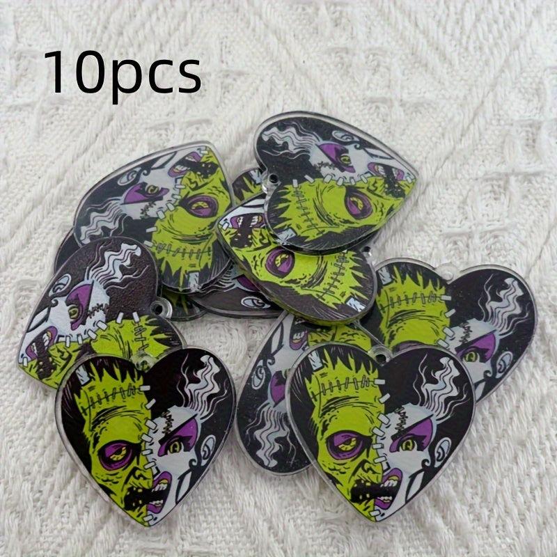 Get into the spooky spirit with these 10pcs Halloween zombie face pendants in green and purple colors. Perfect for jewelry making, keychains, costume party decoration, and more!