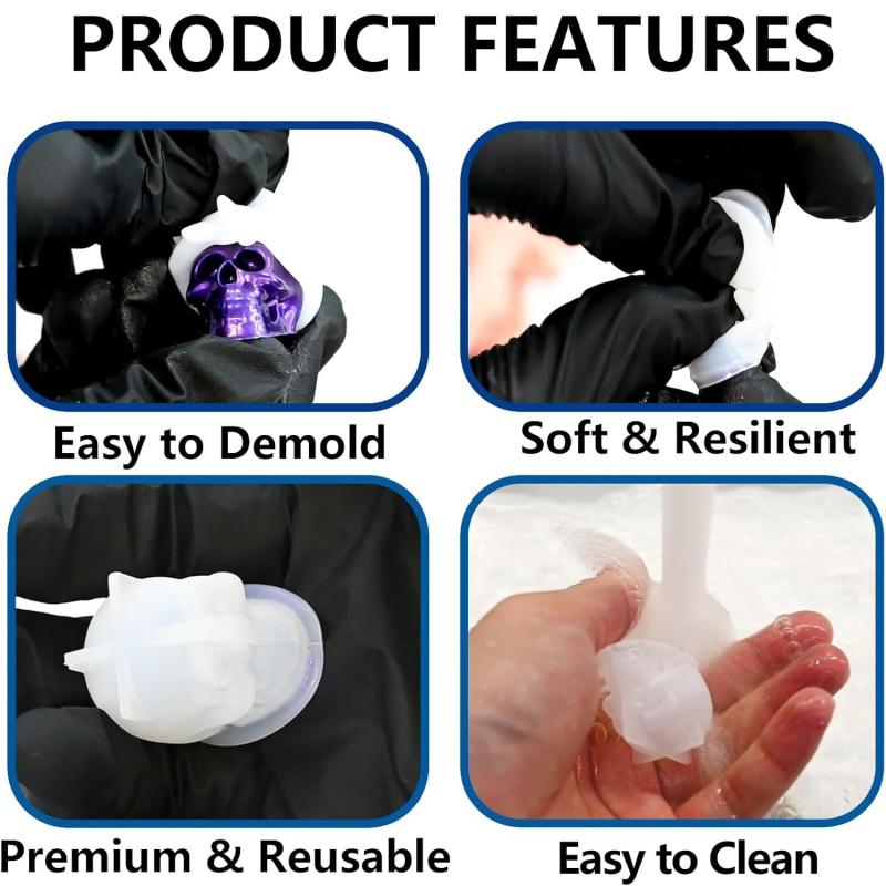 Create spooky Halloween decor with these mini skull molds. Perfect for making resin jewelry, keychains, candles, and more. Each mold is durable and reusable, allowing you to craft unique and detailed items for the holiday season.