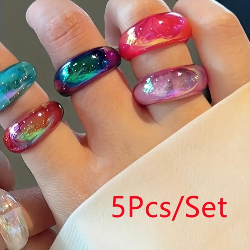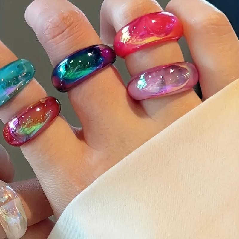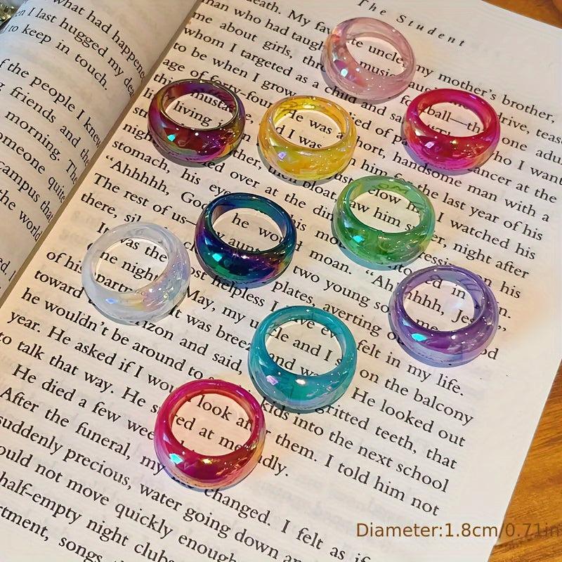 This pack includes a variety of unique and stylish acrylic rings made of glitter resin. Perfect for wearing to parties or as daily accessories. Mix and match for a personalized look.