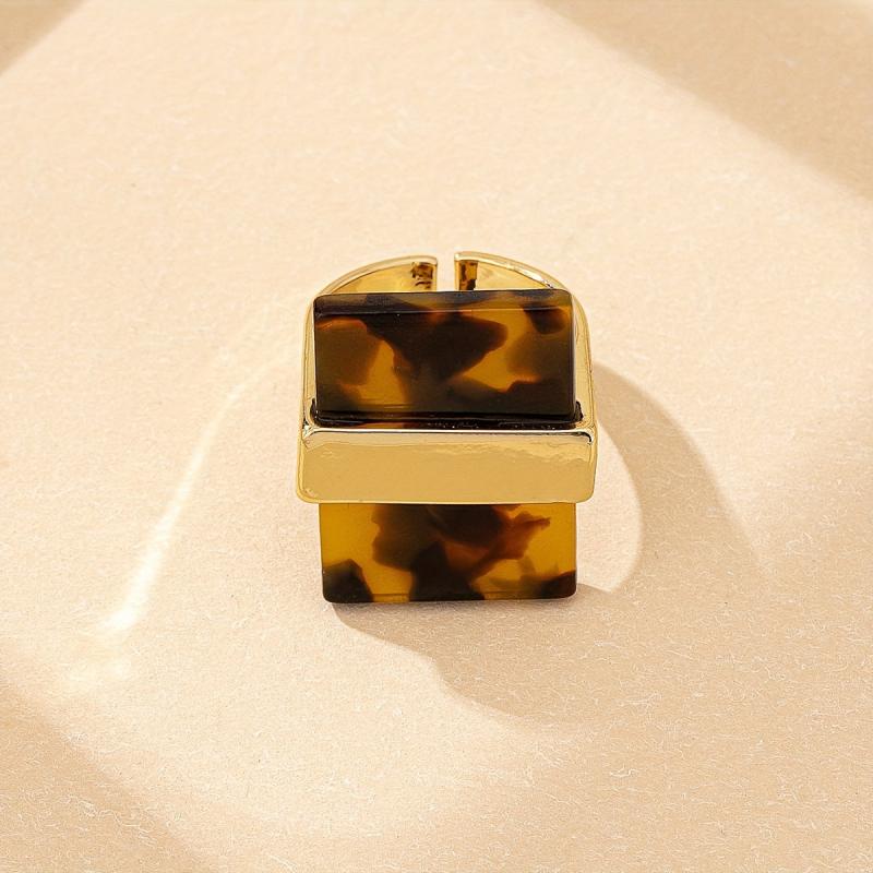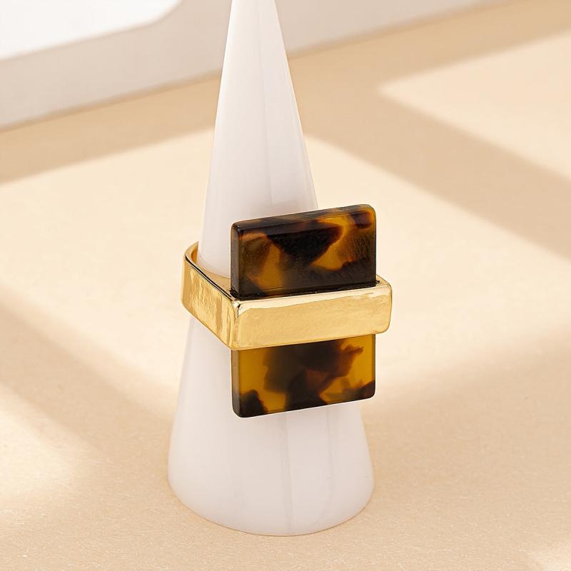 Elegant 14K gold plated ring with geometric acrylic inlay design. Versatile statement jewelry suitable for daily wear or gifting special occasions. 1 piece.