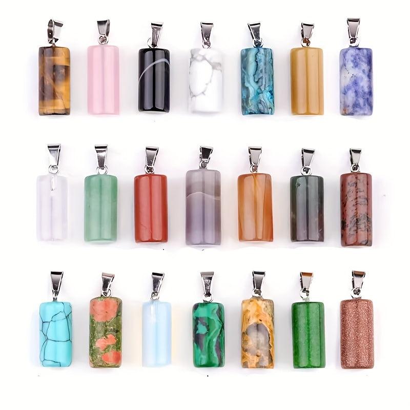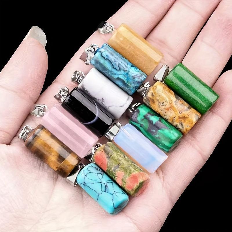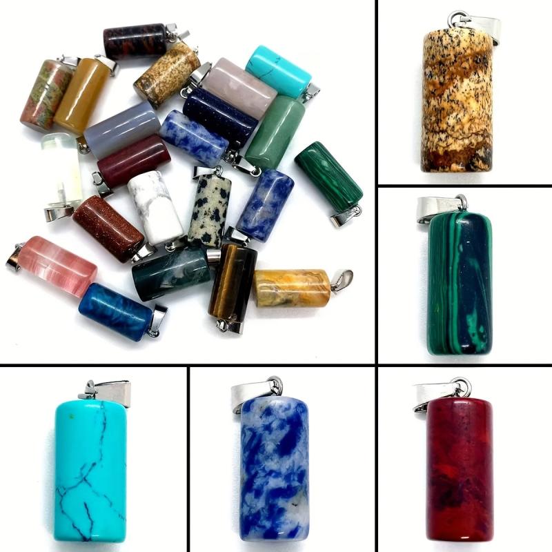 Enhance your jewelry making with this set of 14 Bohemian natural stone cylinder pendants featuring geometric patterns. Ideal for necklaces and bracelets, these accessories are perfect for holiday gifting and Father's Day.