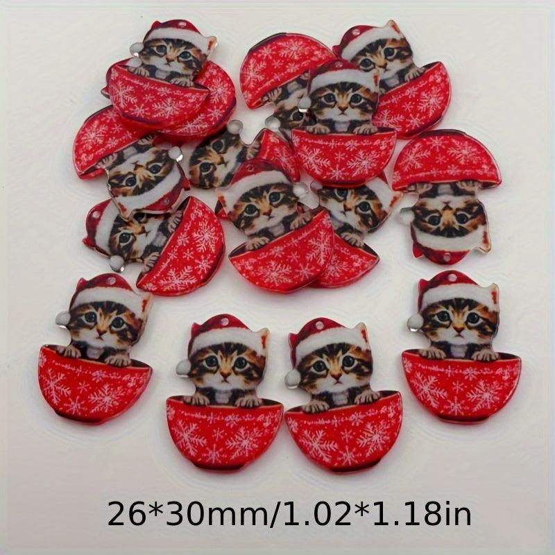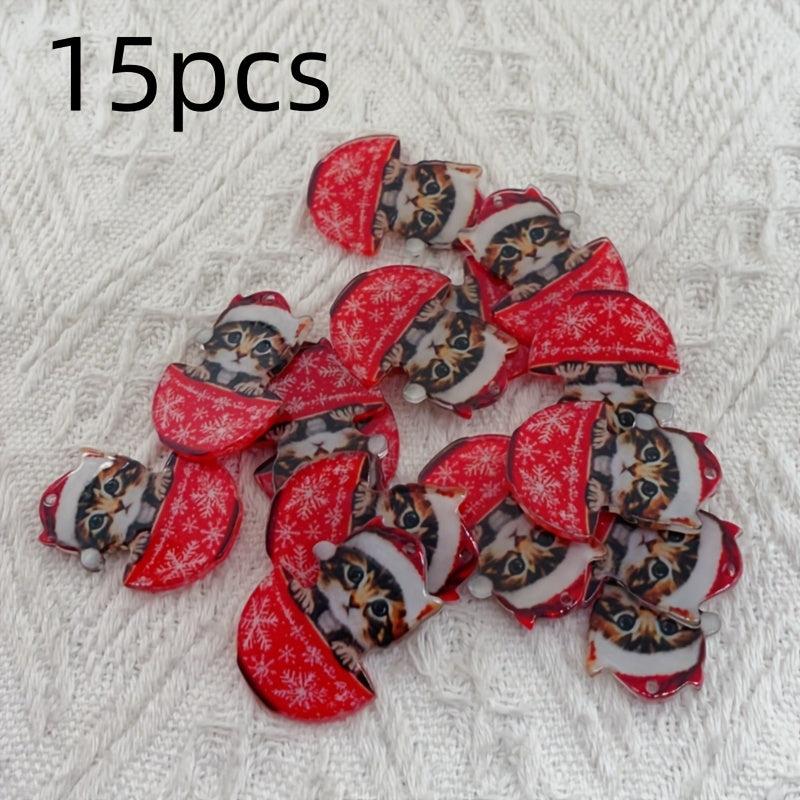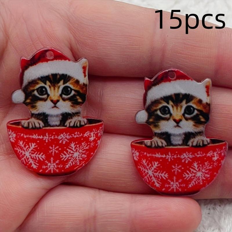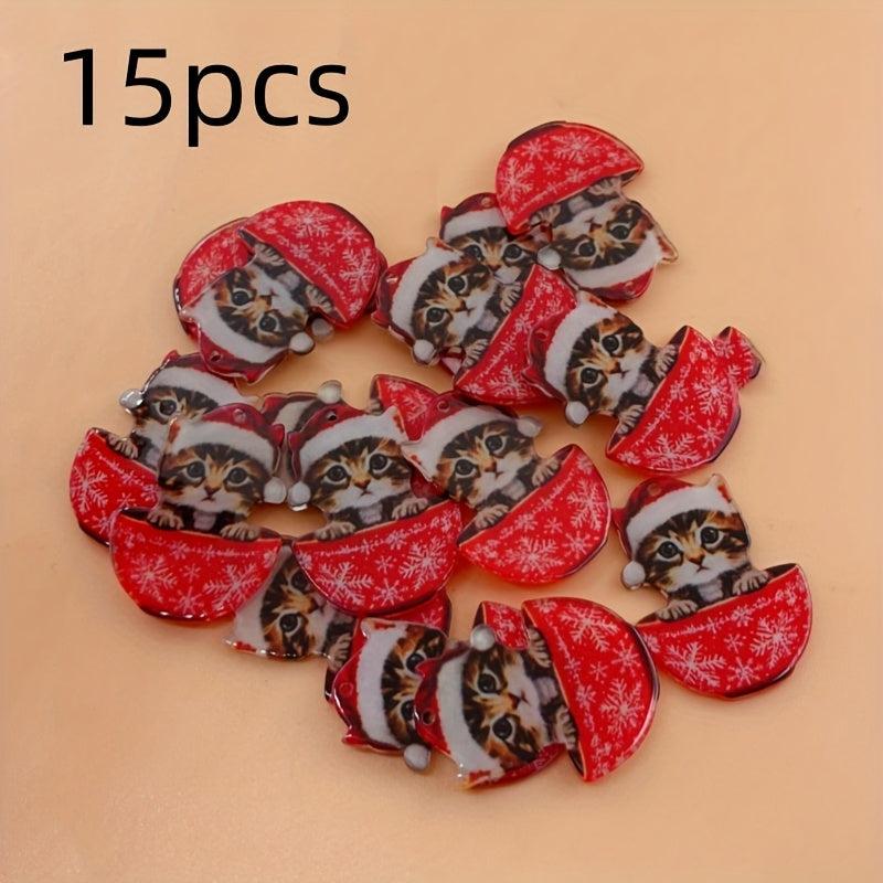 Get into the holiday spirit with this set of 15 Christmas-themed cat acrylic pendants, perfect for creating your own earrings, necklaces, and keychains. Each pendant features adorable cats wearing Santa hats and other festive designs.