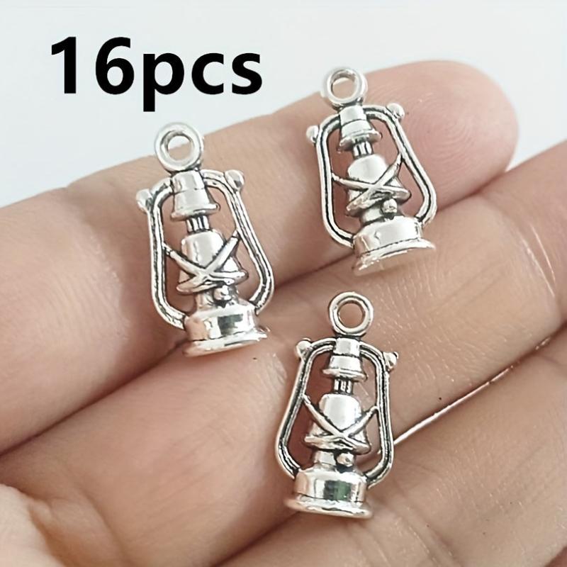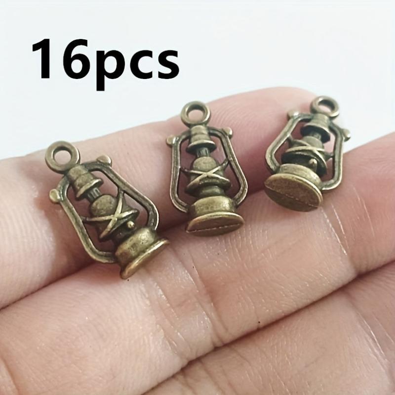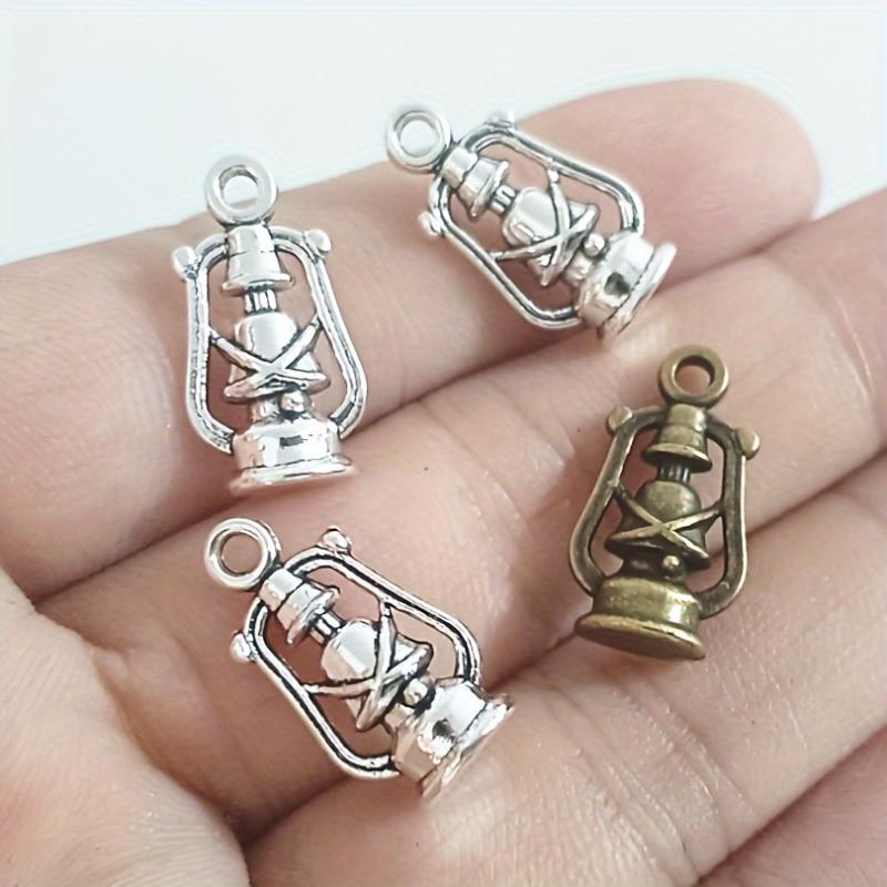 Enhance your jewelry making with these antique silvery and bronze kerosene lamp charms. Perfect for themed crafts and DIY projects.