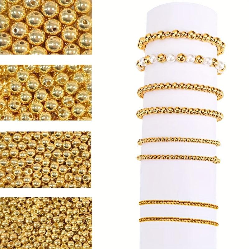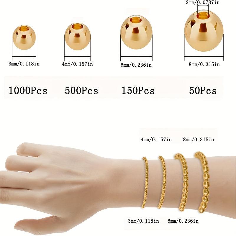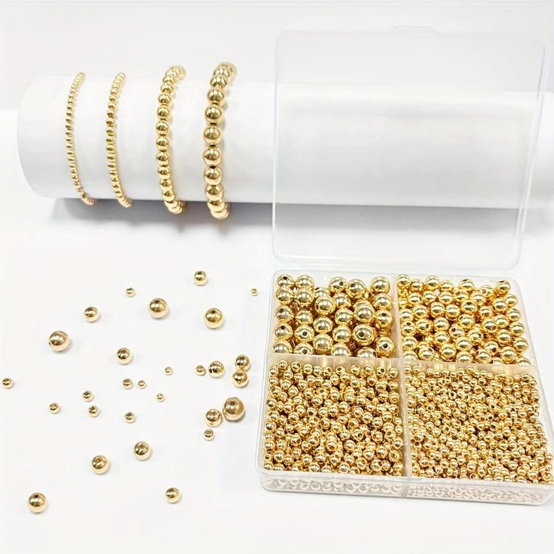 This kit includes 1700 golden smooth round beads in 3mm, 4mm, 6mm, and 8mm sizes, perfect for bracelet and jewelry making.