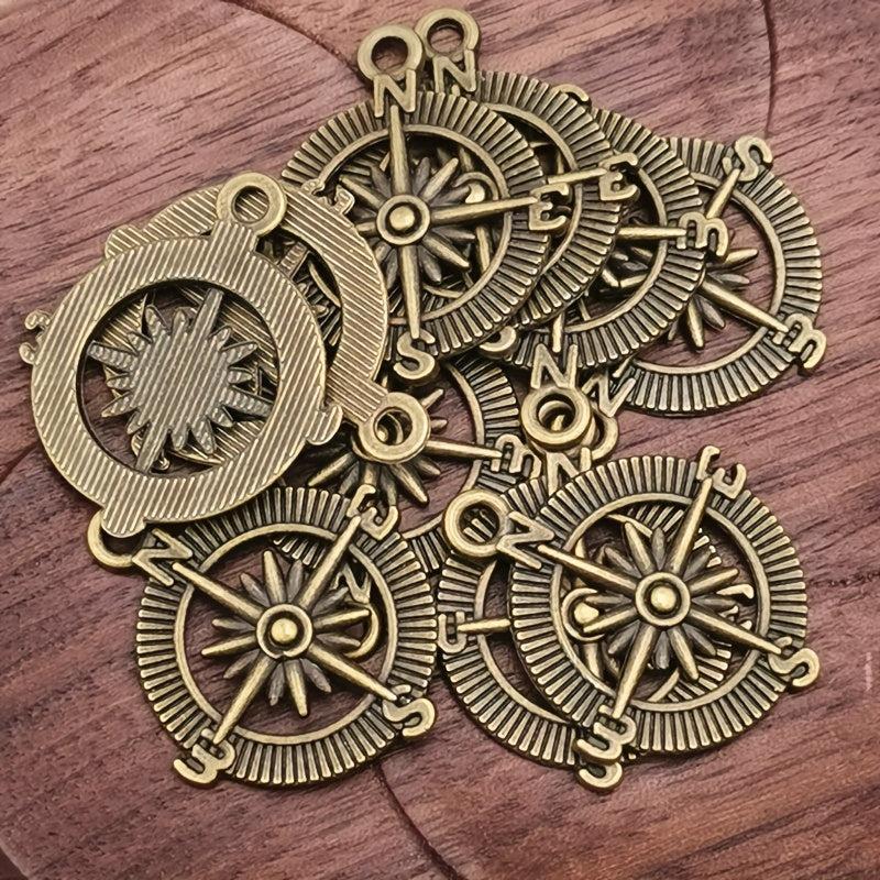 17pcs Bohemian Compass Charm Pendants 25mm Multicolor DIY Jewelry Making