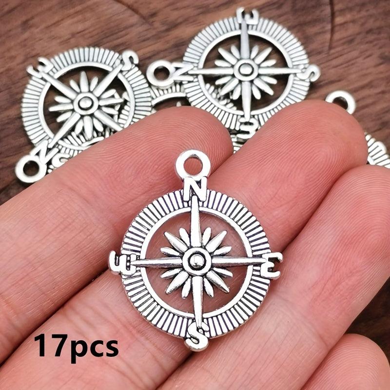 Create stunning jewelry pieces with these Bohemian compass charm pendants. The set includes 17 pieces in various colors, perfect for bracelets, necklaces, earrings, and accessories.