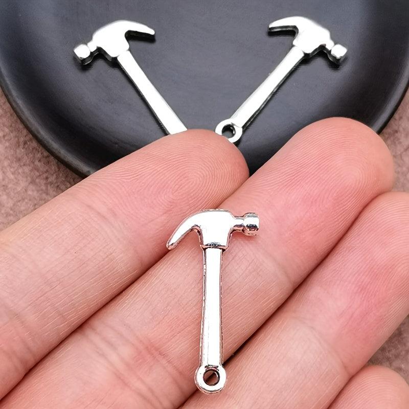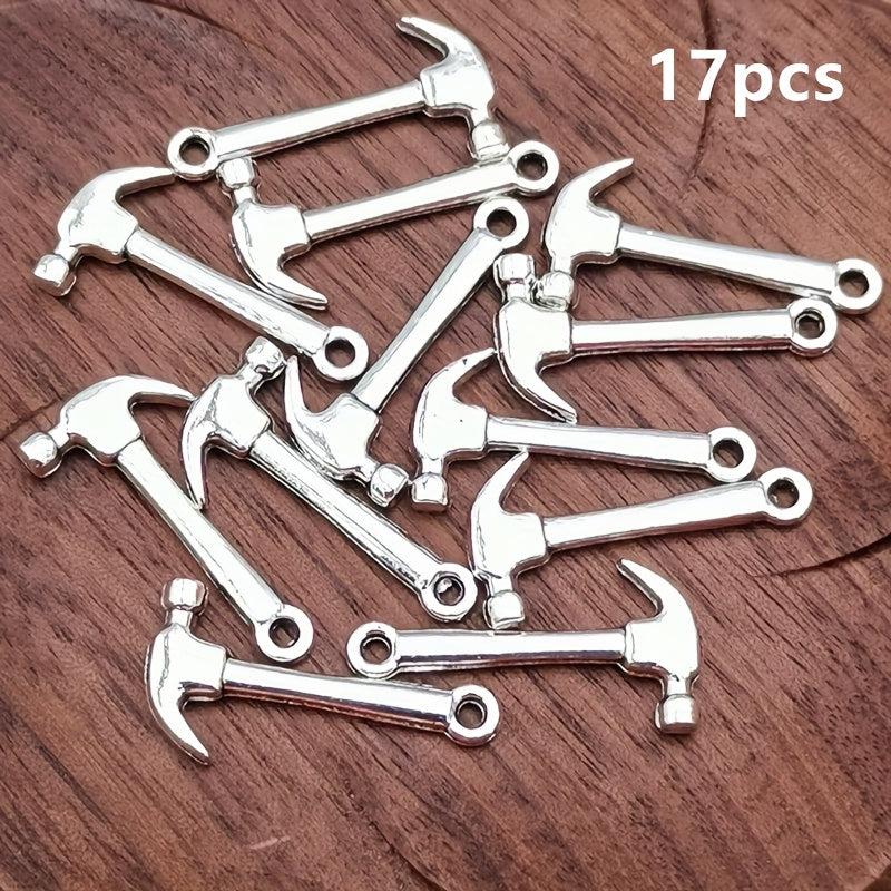 Create unique bohemian-style jewelry with this set of 17 tool hammer charm pendants. Perfect for making bracelets, necklaces, and earrings. Charms are 12-25mm in size.