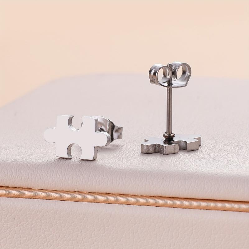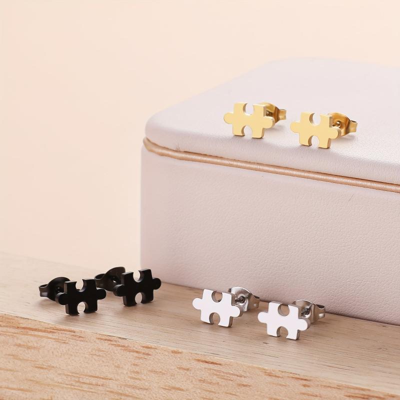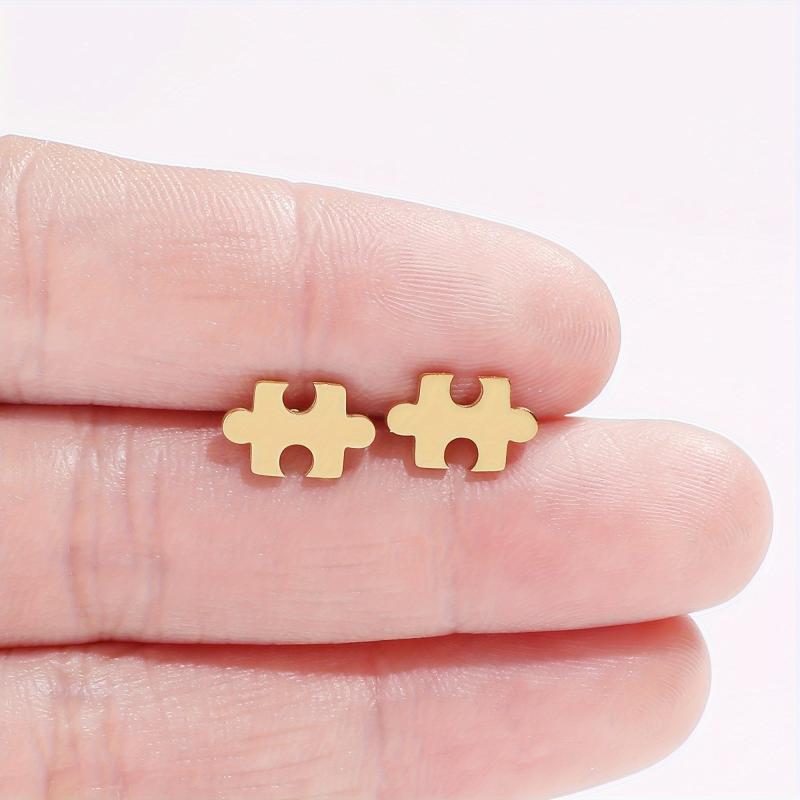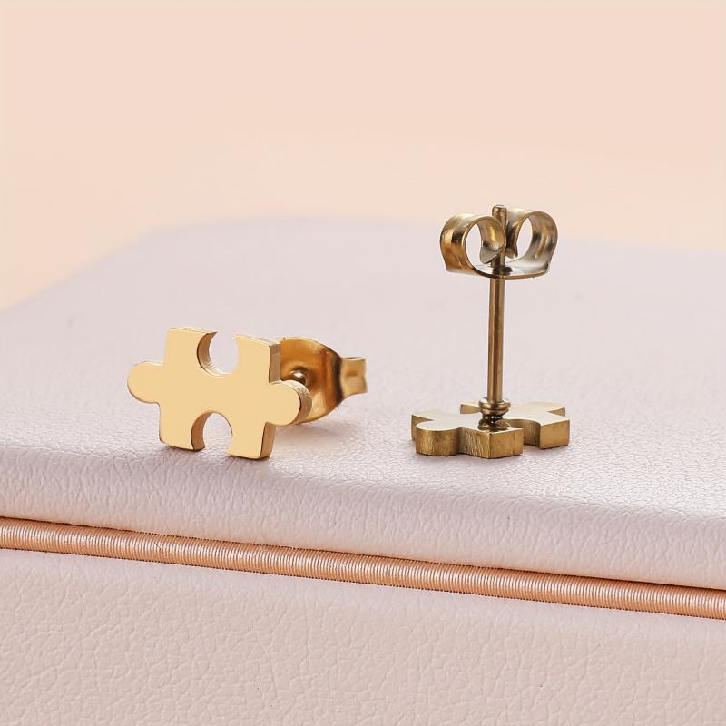 Elegant and versatile, these puzzle-shaped earrings are made from stainless steel with 18K golden plating. Low allergy and suitable for daily wear in all seasons.