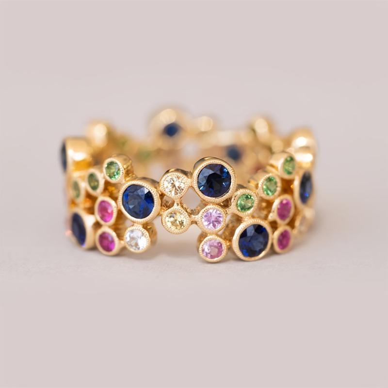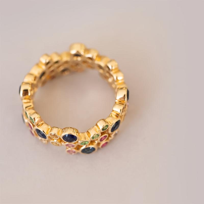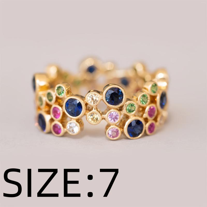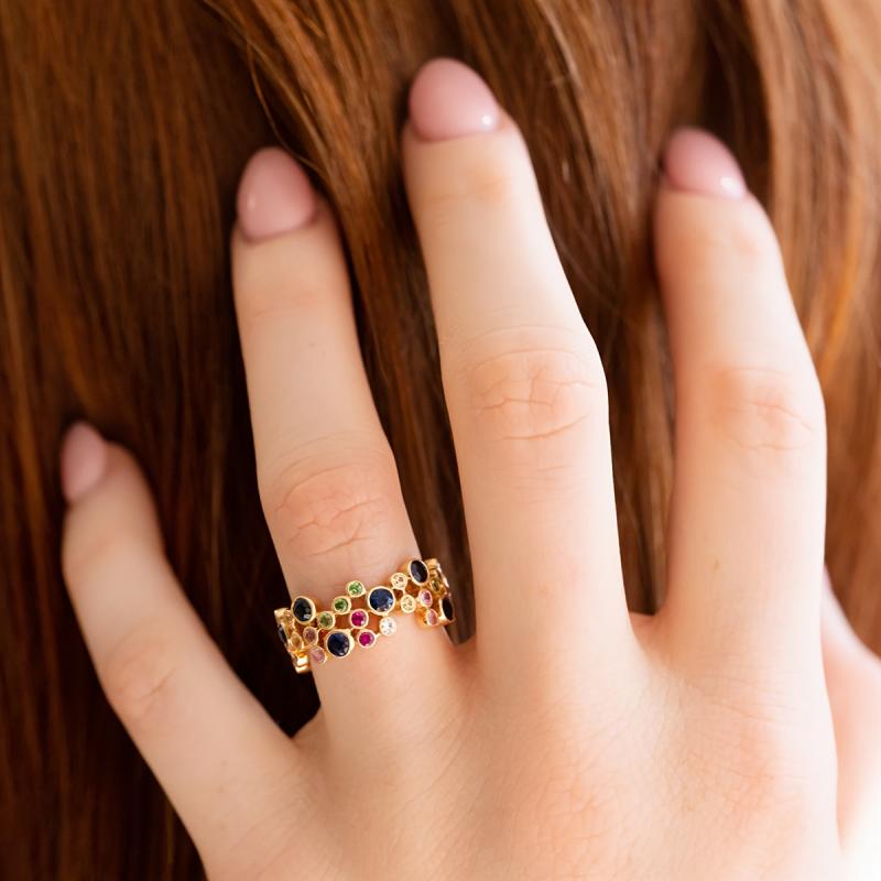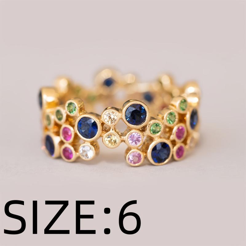 Elegant ring crafted with high-quality copper plated with 18K gold and adorned with vibrant synthetic zirconia stones. Perfect for mothers, weddings, parties, and casual wear.