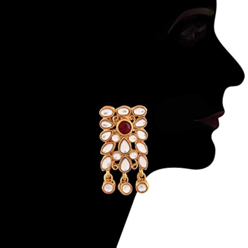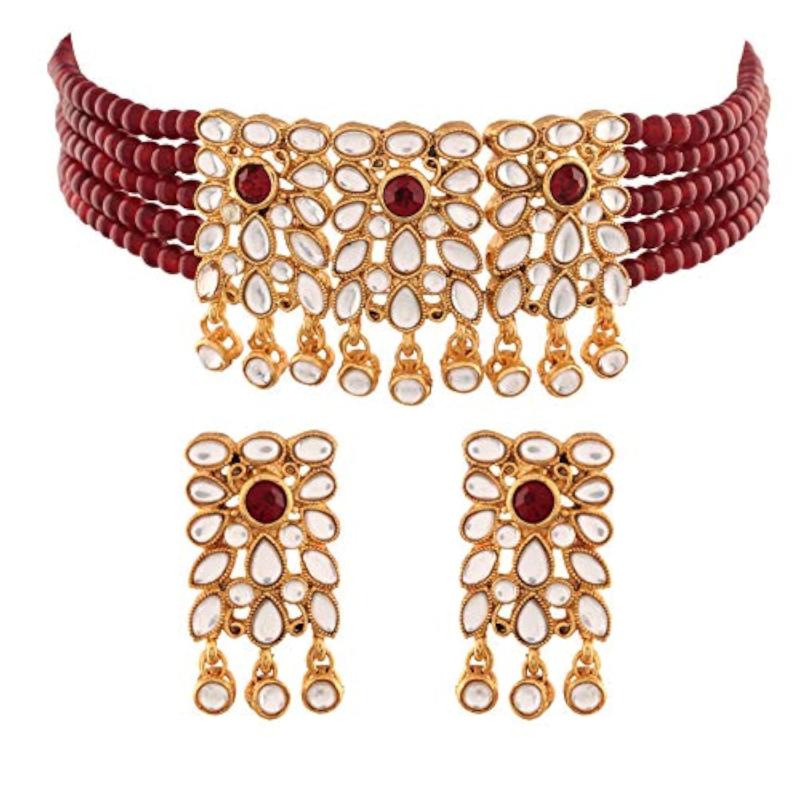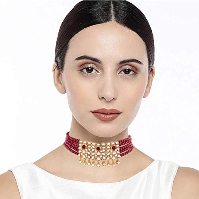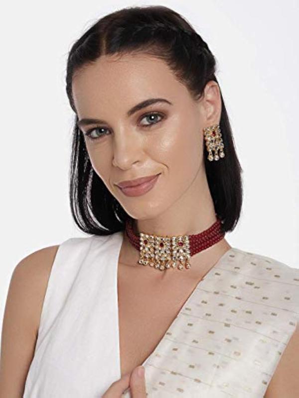 Elegant traditional choker necklace set with Kundan and pearl detailing.