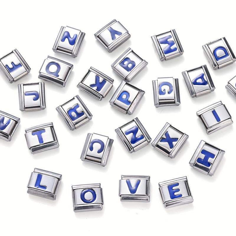 Get creative with these removable engraved alphabet charms perfect for bracelets and necklaces. Made of high-quality stainless steel.