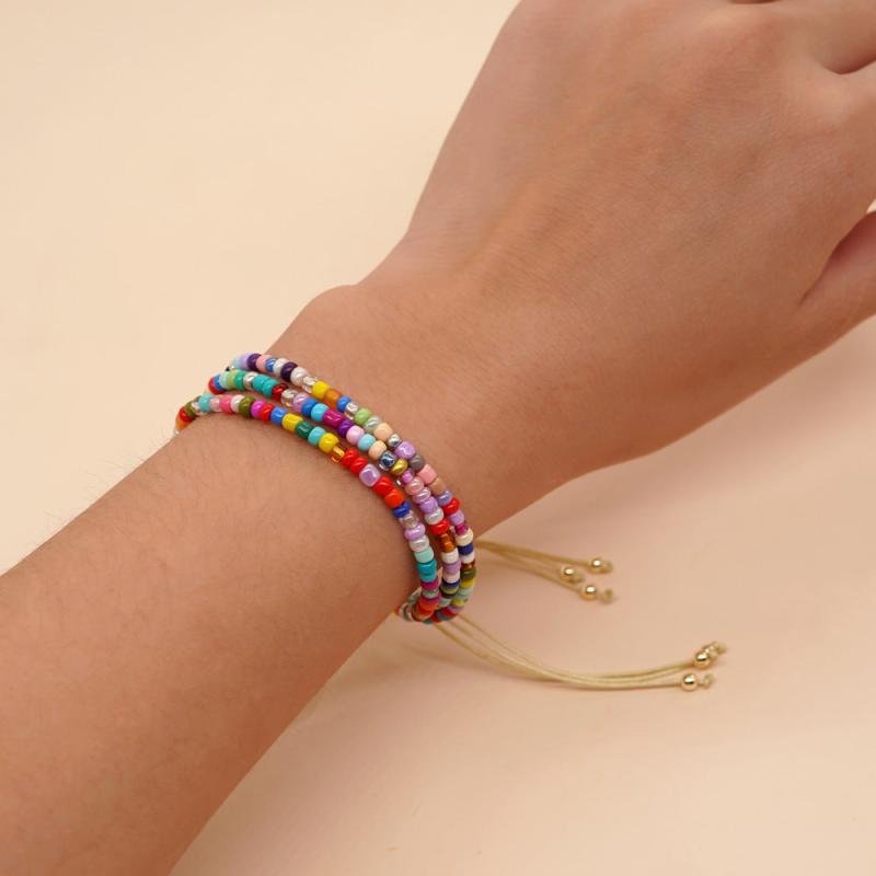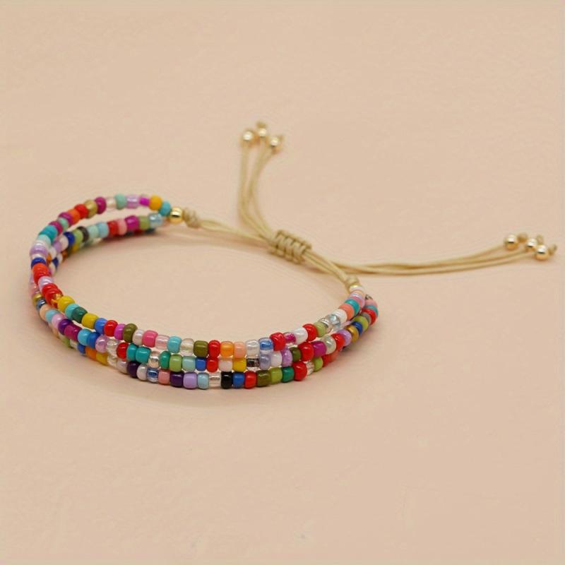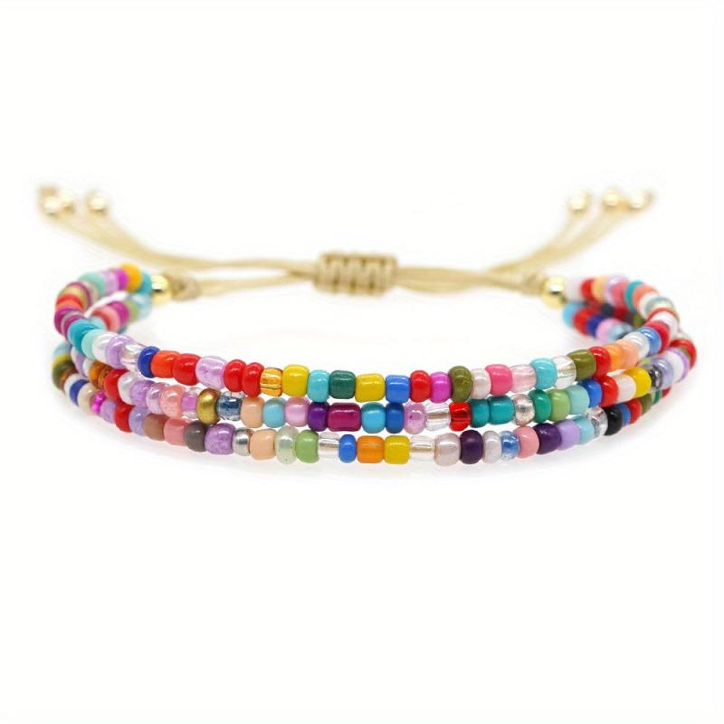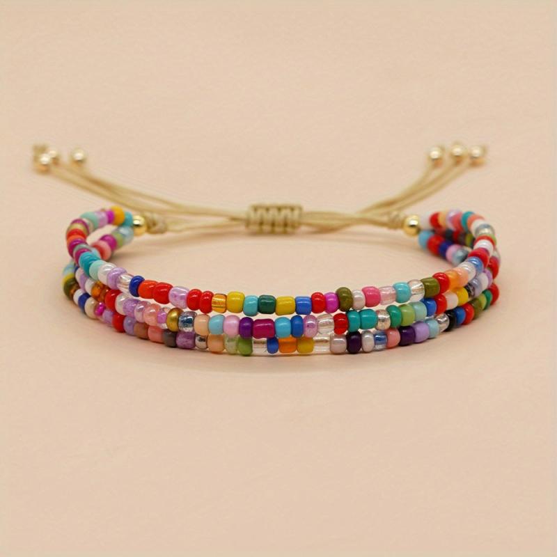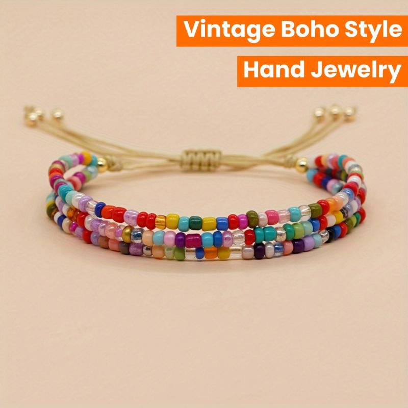 1pc Boho Style Beaded Bracelet Colorful Mini Seed Beads Hand Jewelry