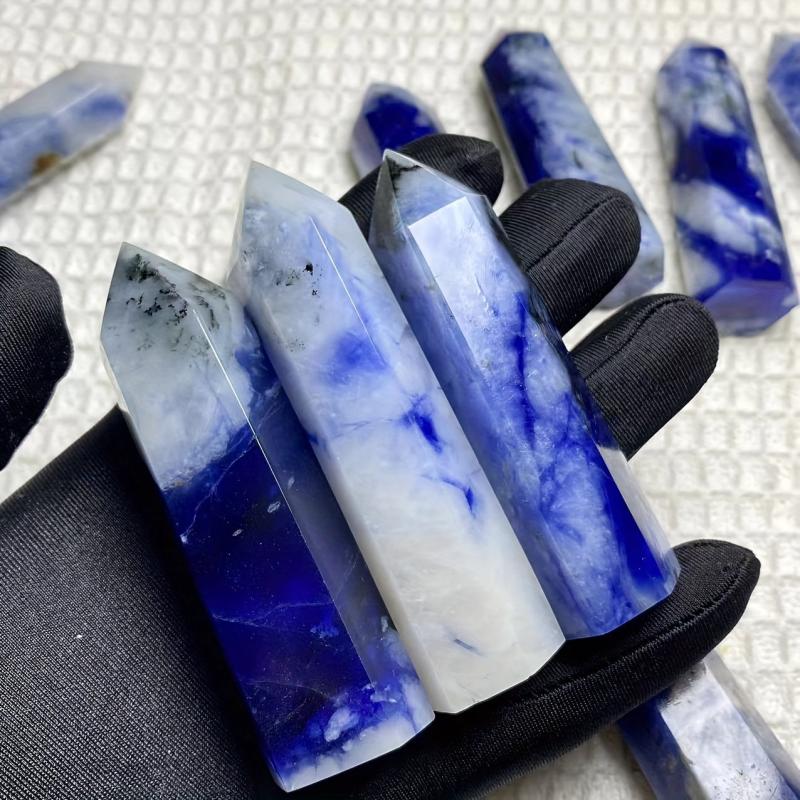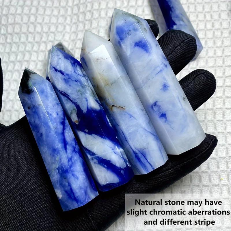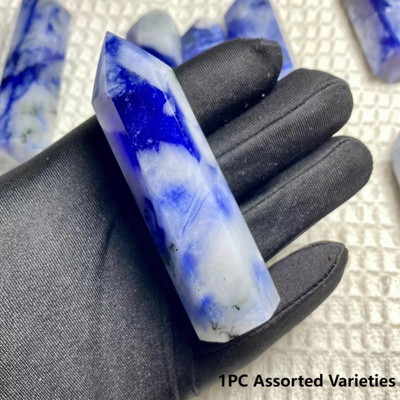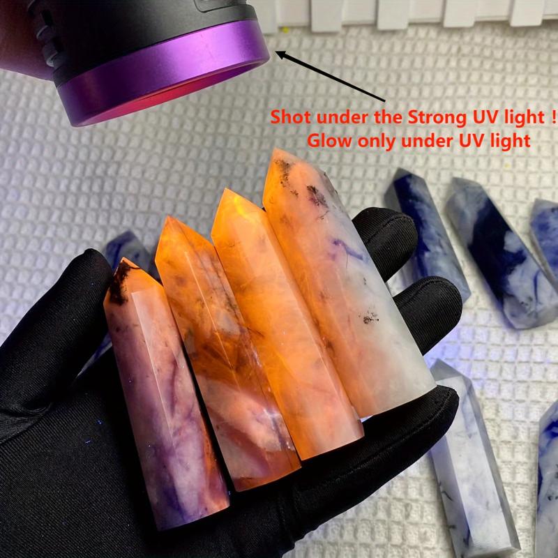 Experience the unique beauty of this natural stone tower featuring Afganite & Porcelain materials with UV light fluorescence effect. Each piece exhibits different patterns with random fluorescence that is not luminescent.
