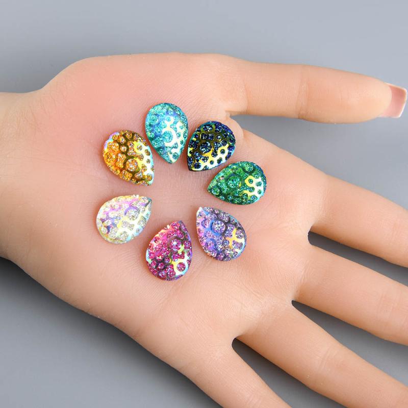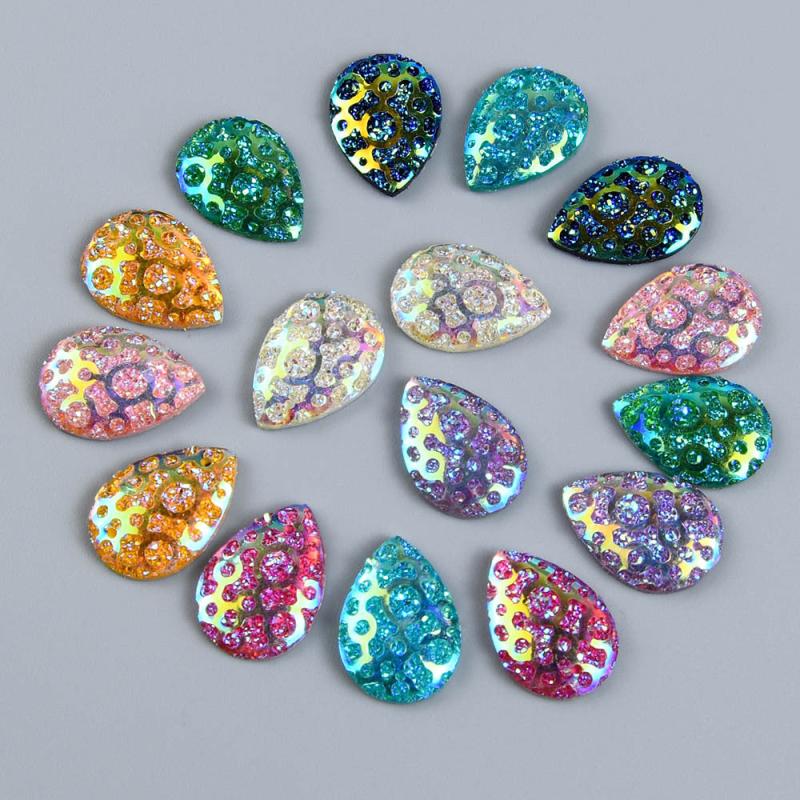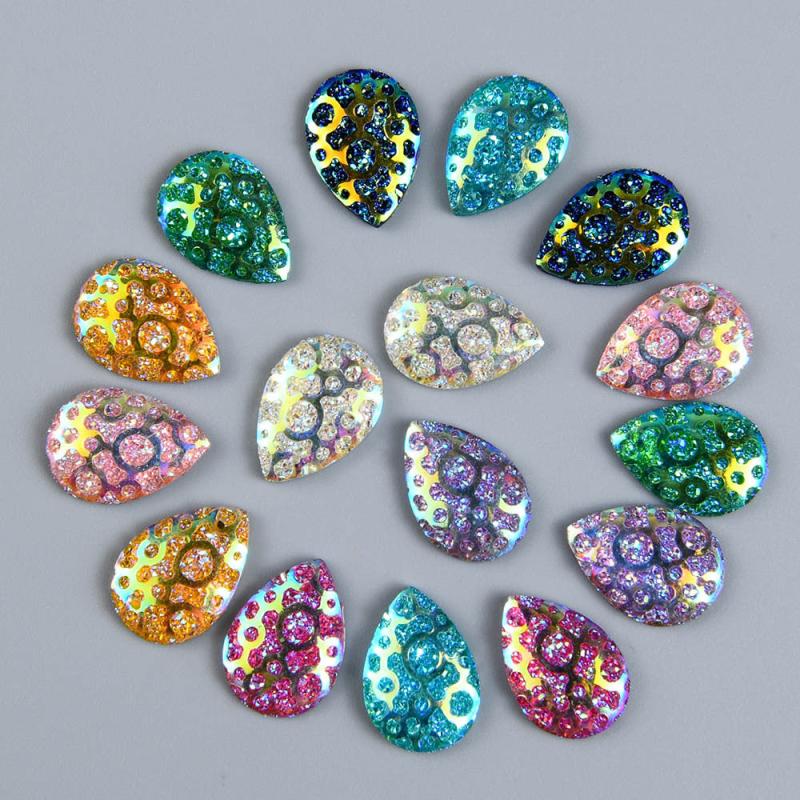 Enhance your needlework projects and jewelry designs with these colorful teardrop rhinestones. Made of resin crystal stones, these appliques are perfect for DIY accessories.