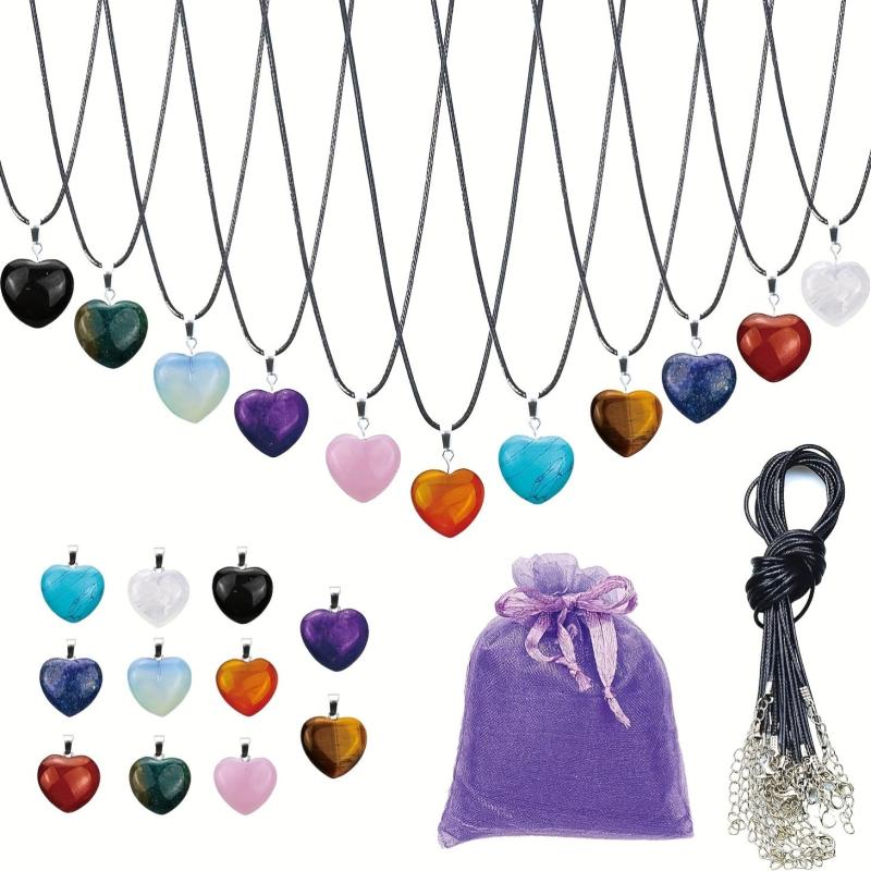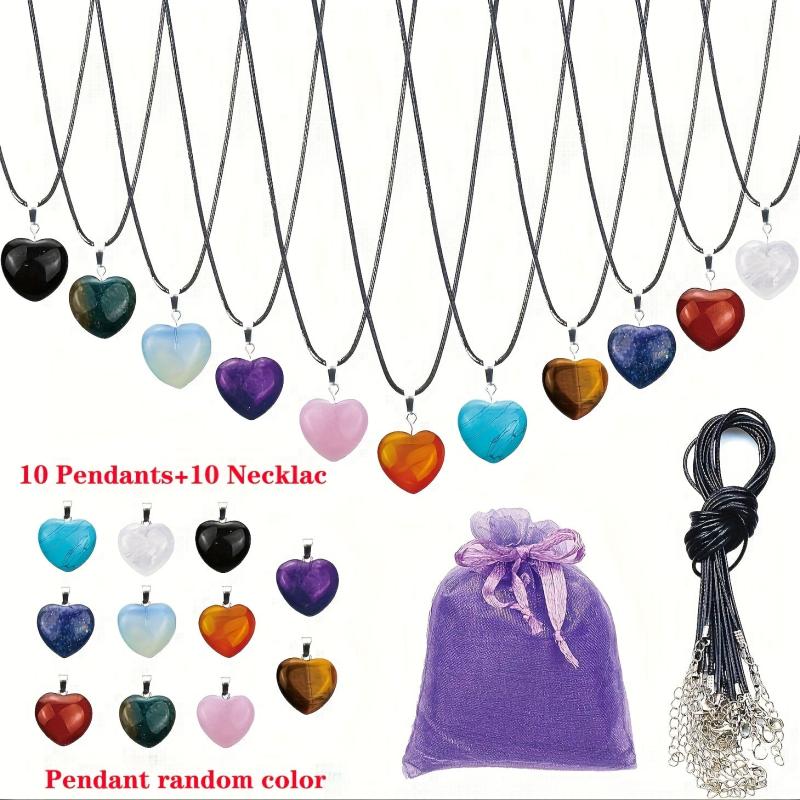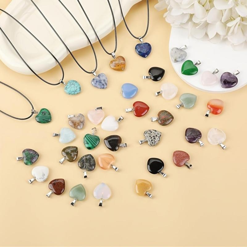 Get a set of 20 faux quartz crystal heart pendant necklaces with adjustable chains, perfect for creating your own DIY necklace jewelry designs.