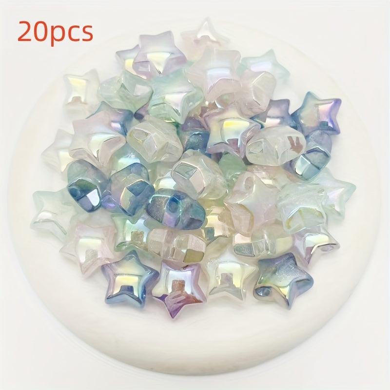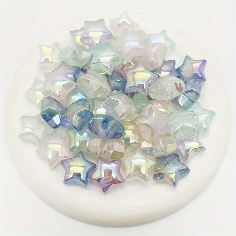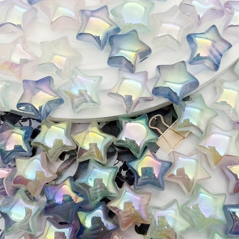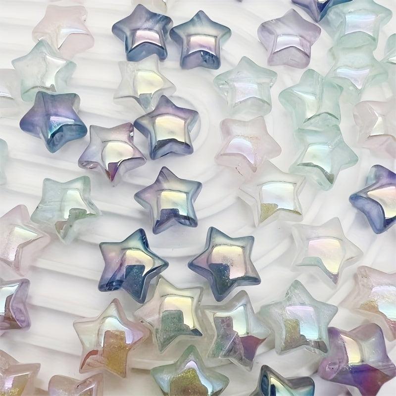 These iridescent star beads glow in the dark and have an iridescent rainbow color effect. Perfect for creating DIY jewelry that glows under blacklight.