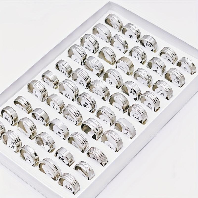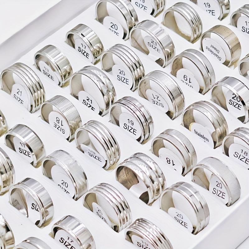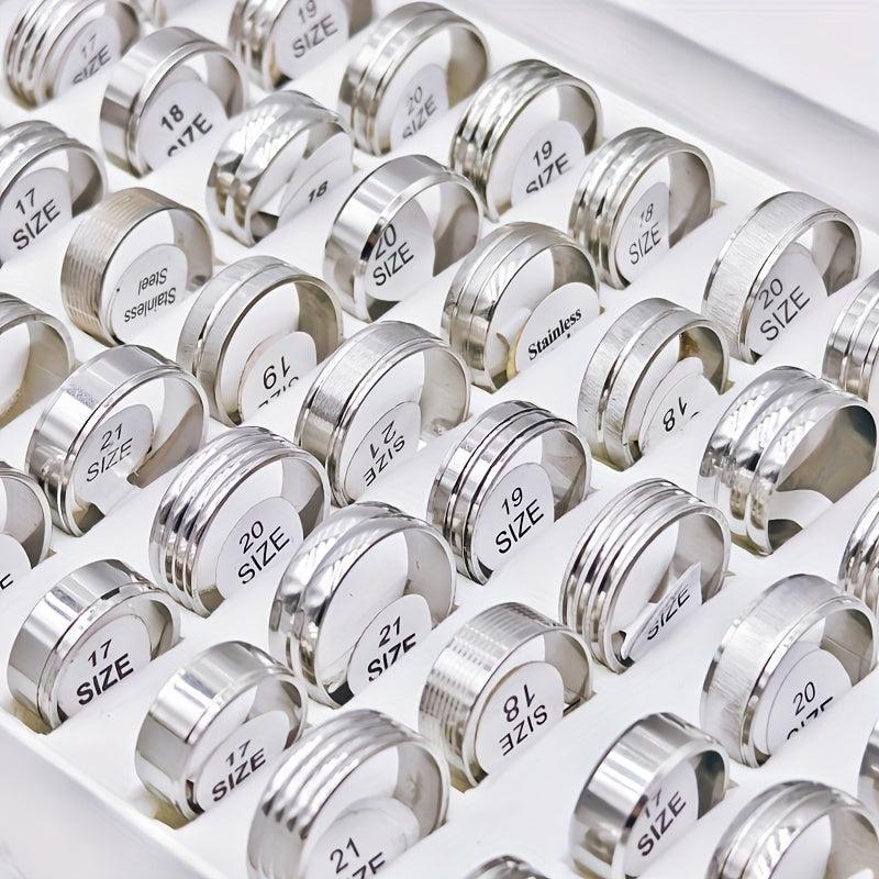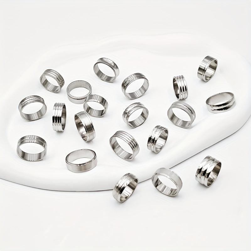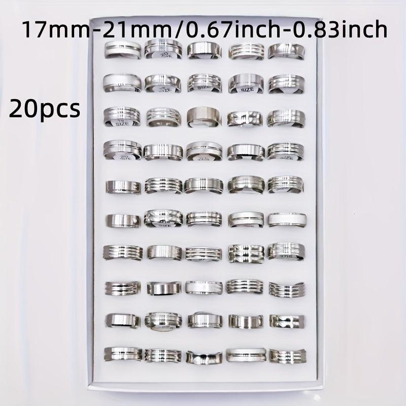 Enhance your style with this set of 20 silvery striped rings in mixed styles. Made of stainless steel, these rings are perfect for daily wear, parties, or as a Valentine's gift for women.