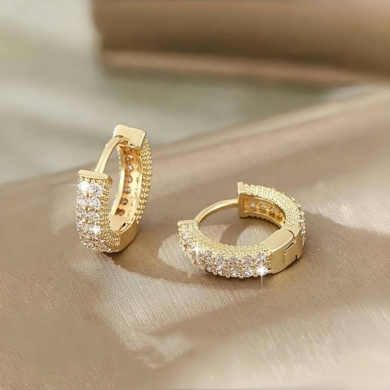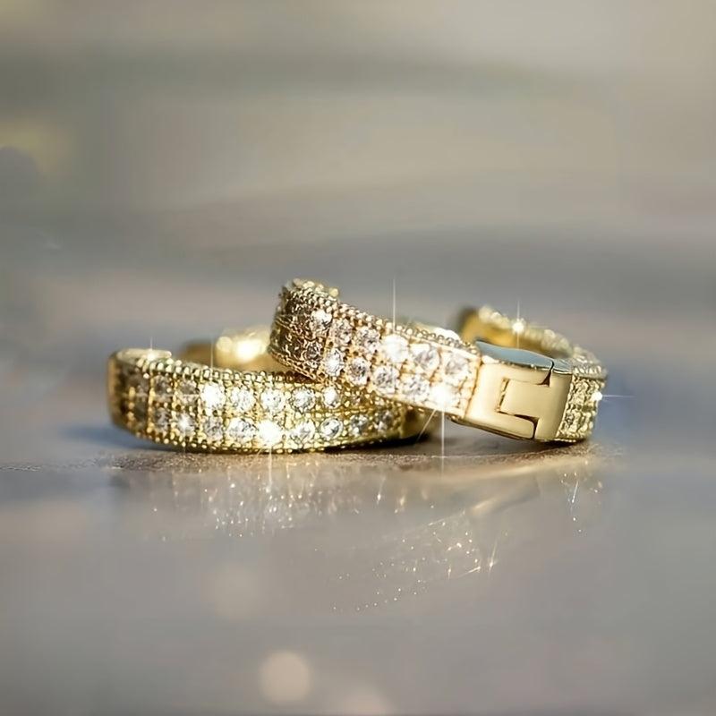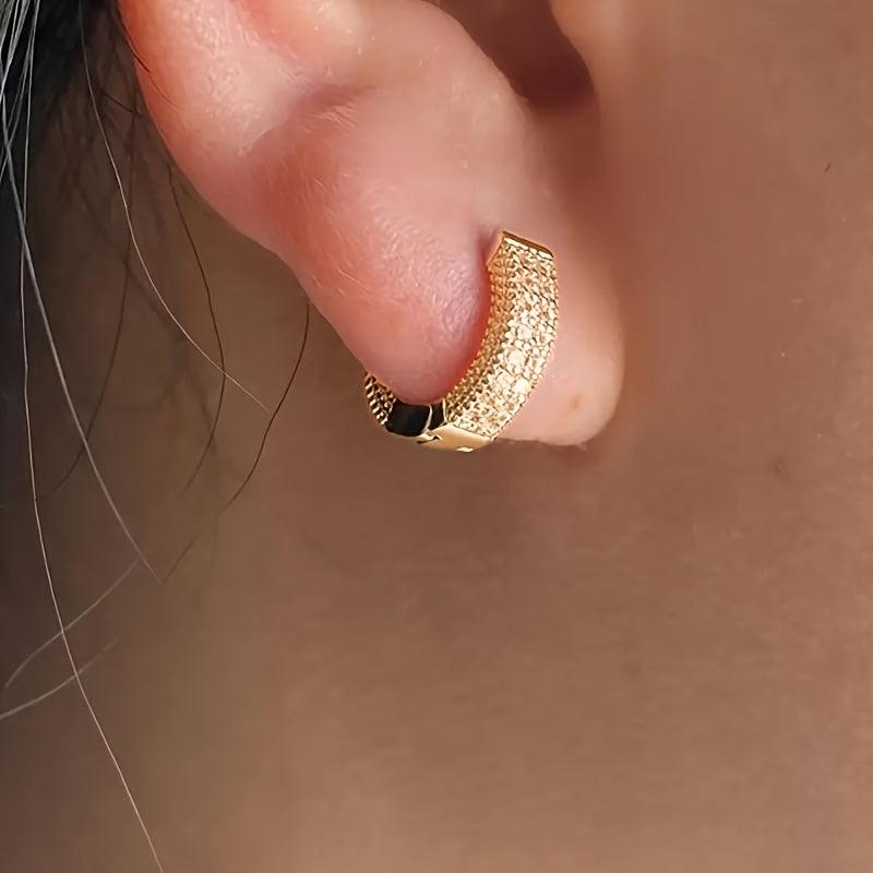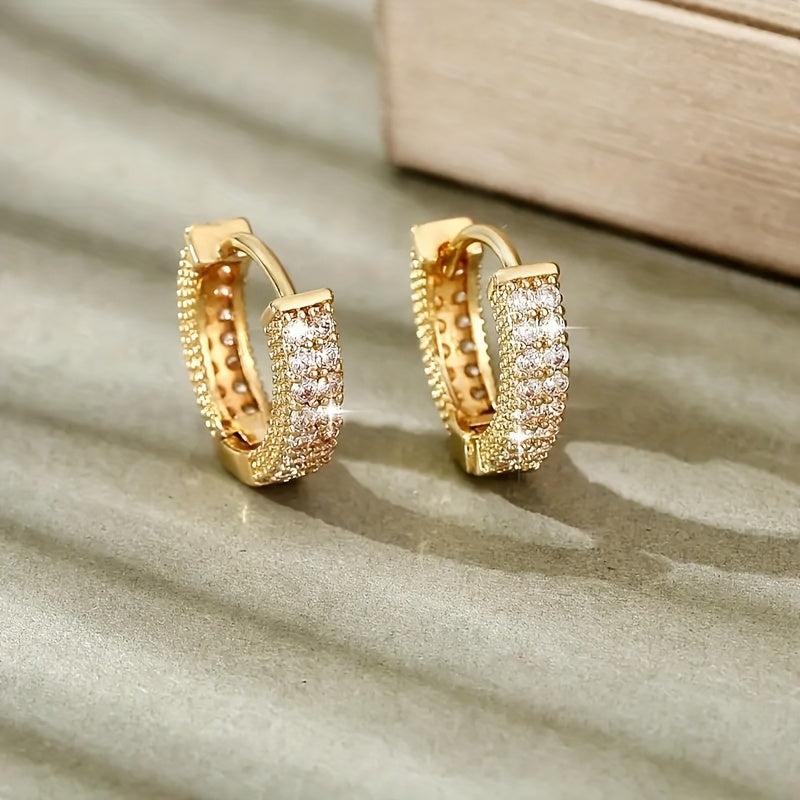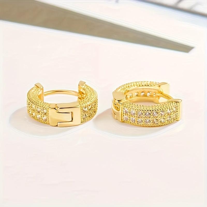 Elevate your everyday look with these stunning geometric hoop earrings. Made with 22K golden plated tone and sparkling cubic zirconia, these earrings are perfect for daily wear and gifting all seasons.