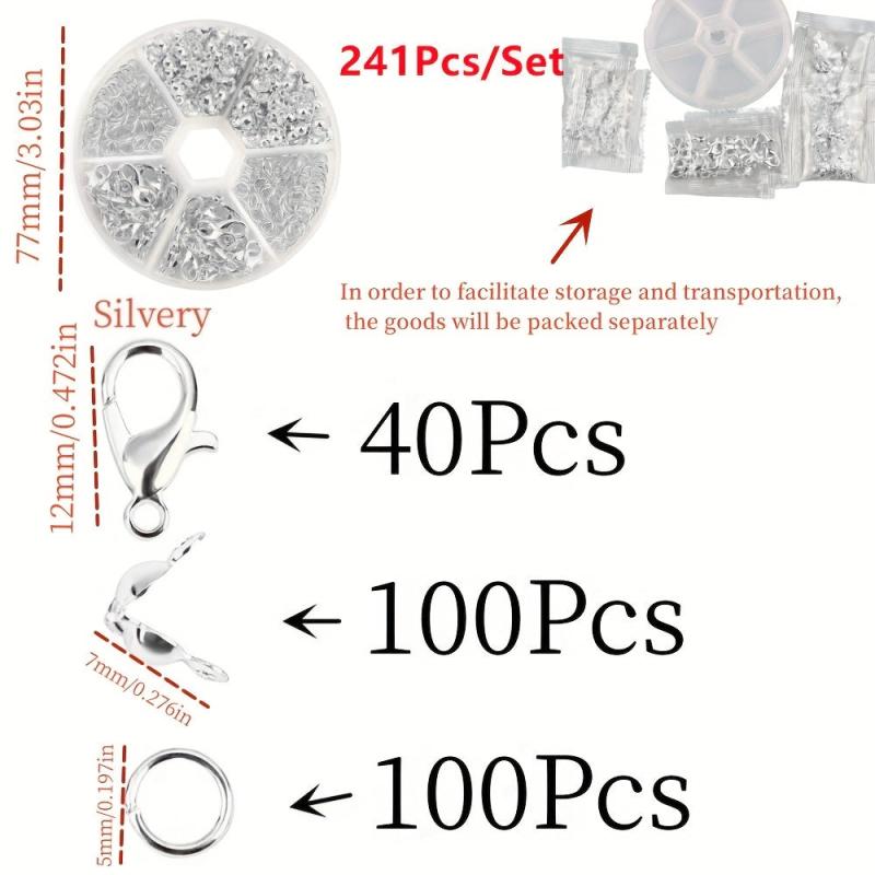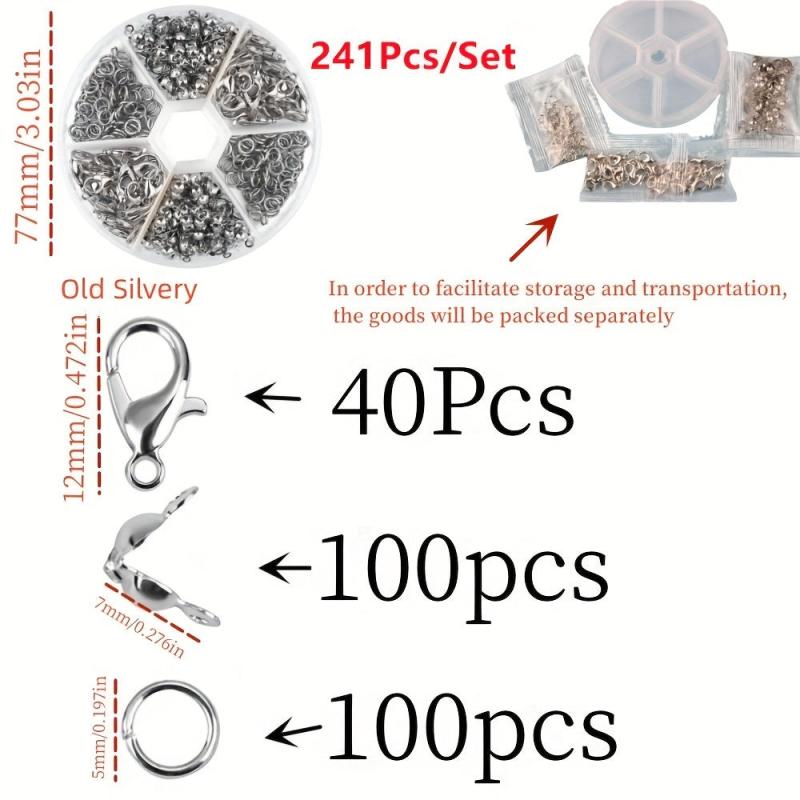 Create your own beautiful jewelry with this 241pcs DIY craft set including lobster clasps, jump rings, and zinc alloy materials. Perfect for DIY bracelets, necklaces, and more.