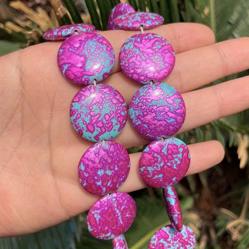 Create stunning jewelry with these 25mm TeoWaki multicolor turquoise coin beads. Perfect for necklaces, bracelets, earrings, and fashion accessories.