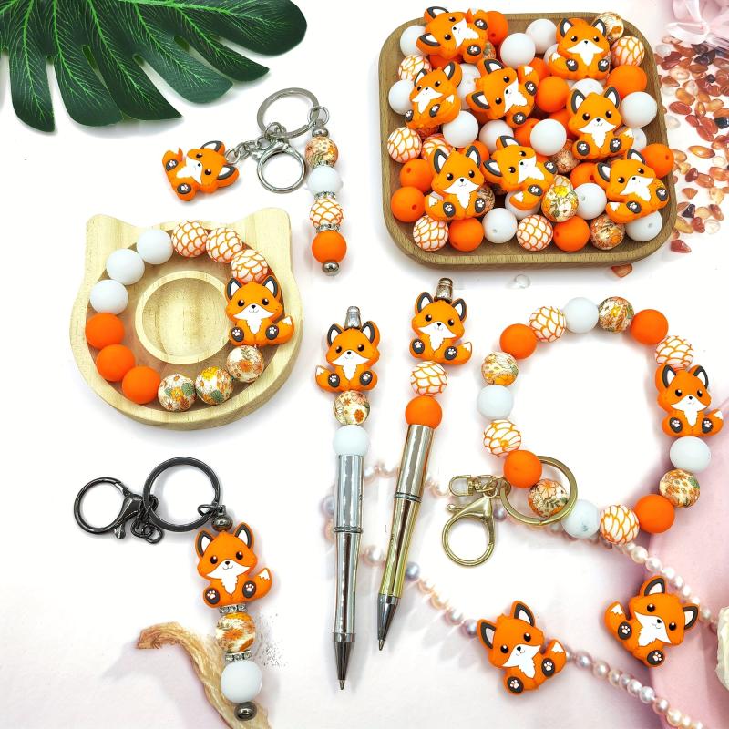 These vibrant orange fox printed silicone beads are perfect for adding a touch of spring and summer to your jewelry. Use them to create earrings, necklaces, bag chains, and phone straps.