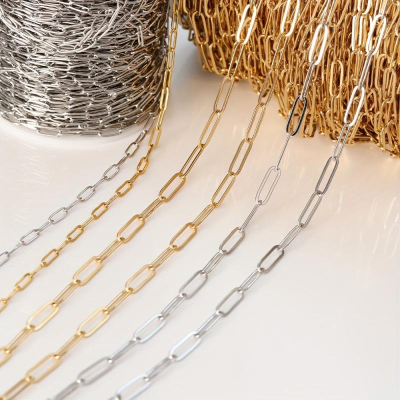 This stainless steel chain is perfect for necklace, bracelet, and choker making projects. Its golden color adds an elegant touch to your jewelry designs.