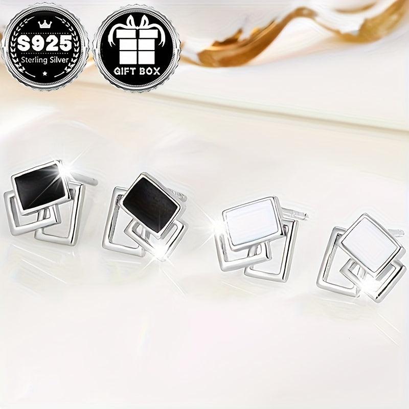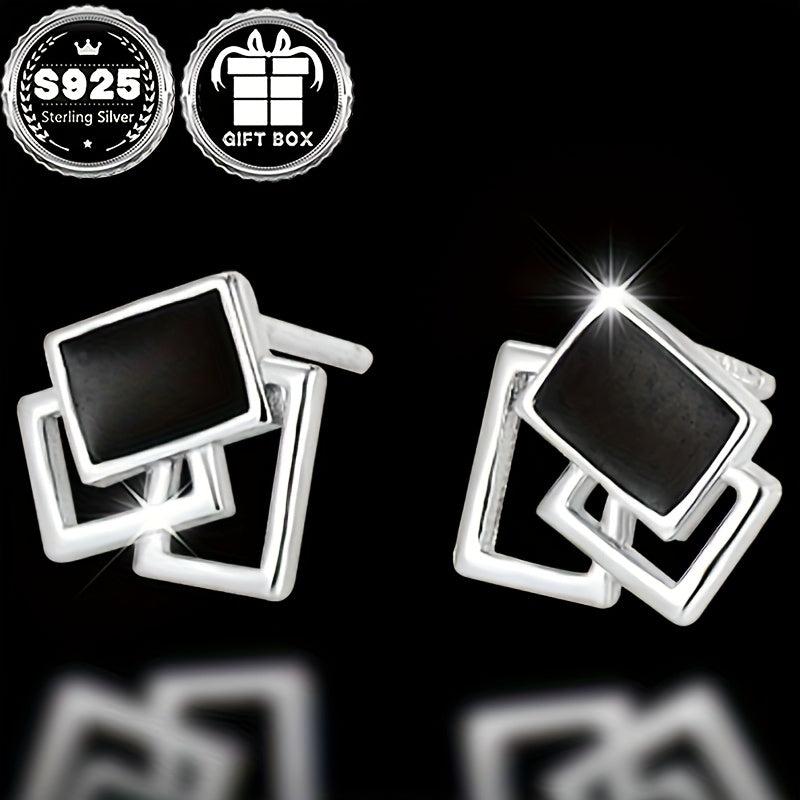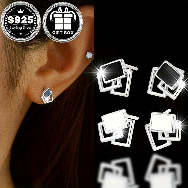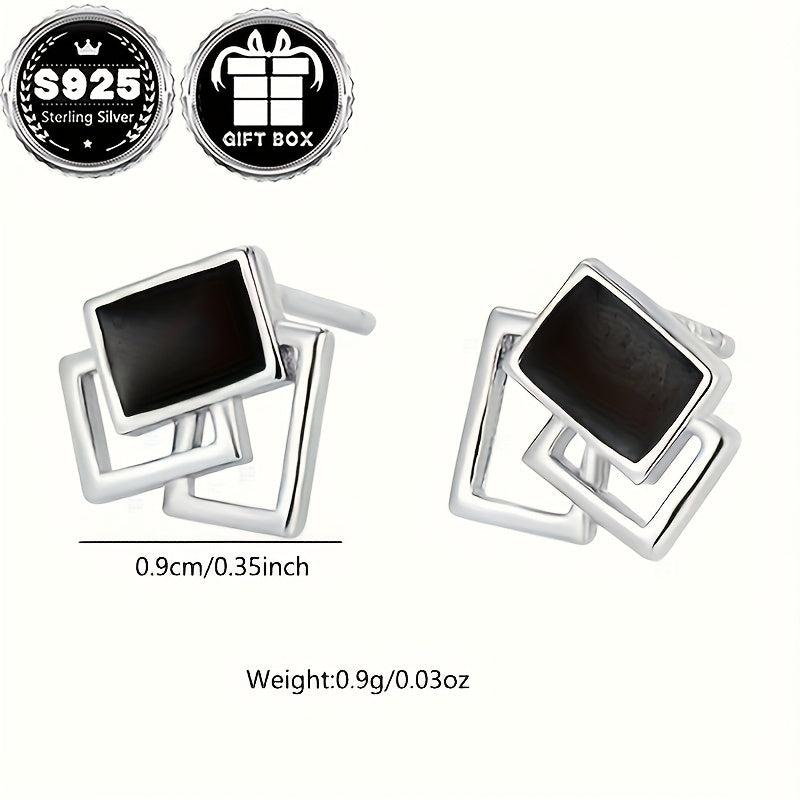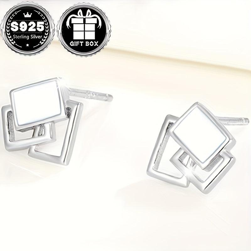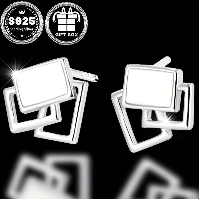These classic earrings are made of 925 silver and feature a stylish geometric and square design. They are lightweight at 0.9g and come in a beautiful packaging, making them a perfect gift for friends. Suitable for daily wear and parties.