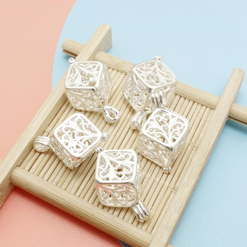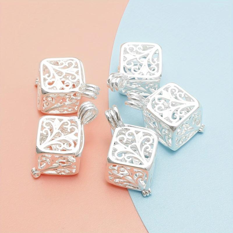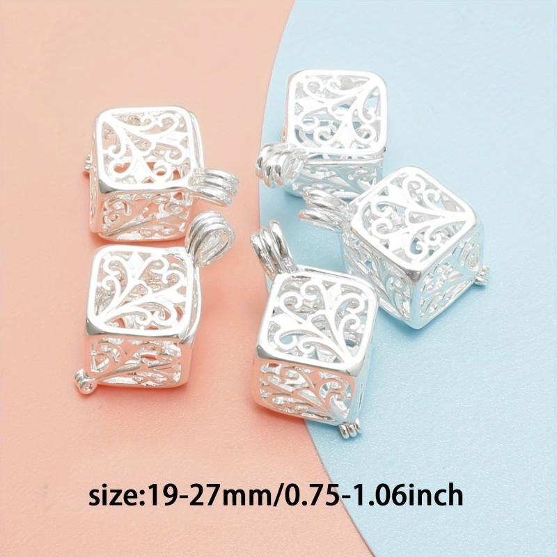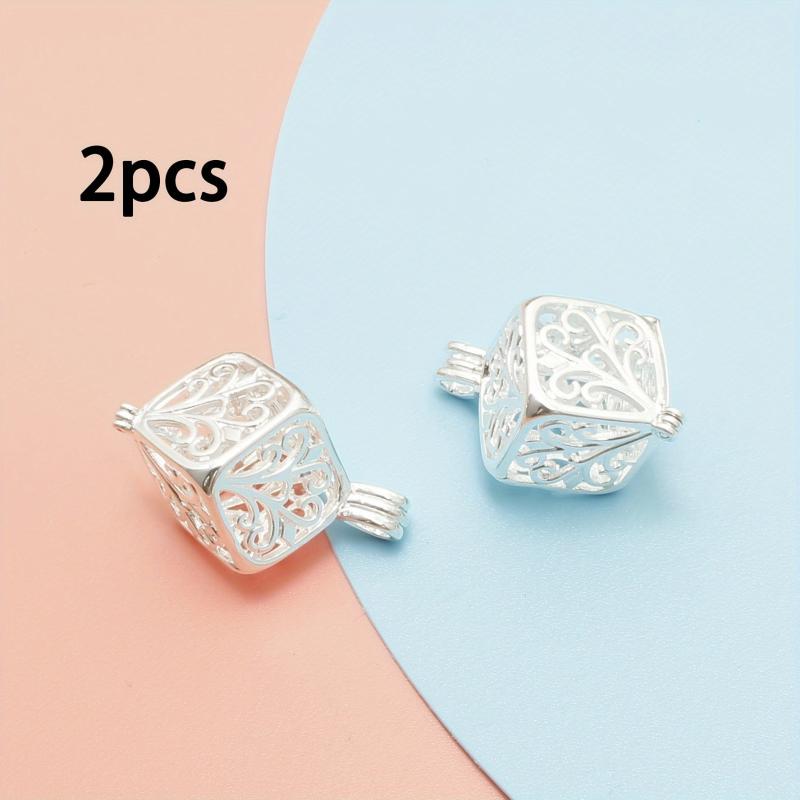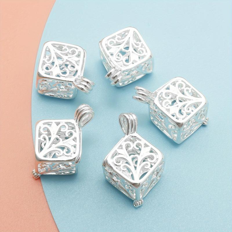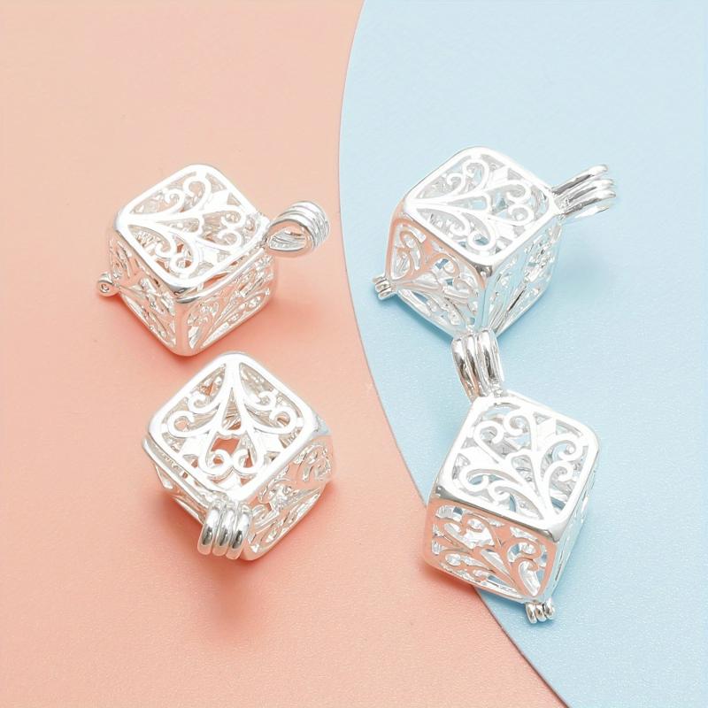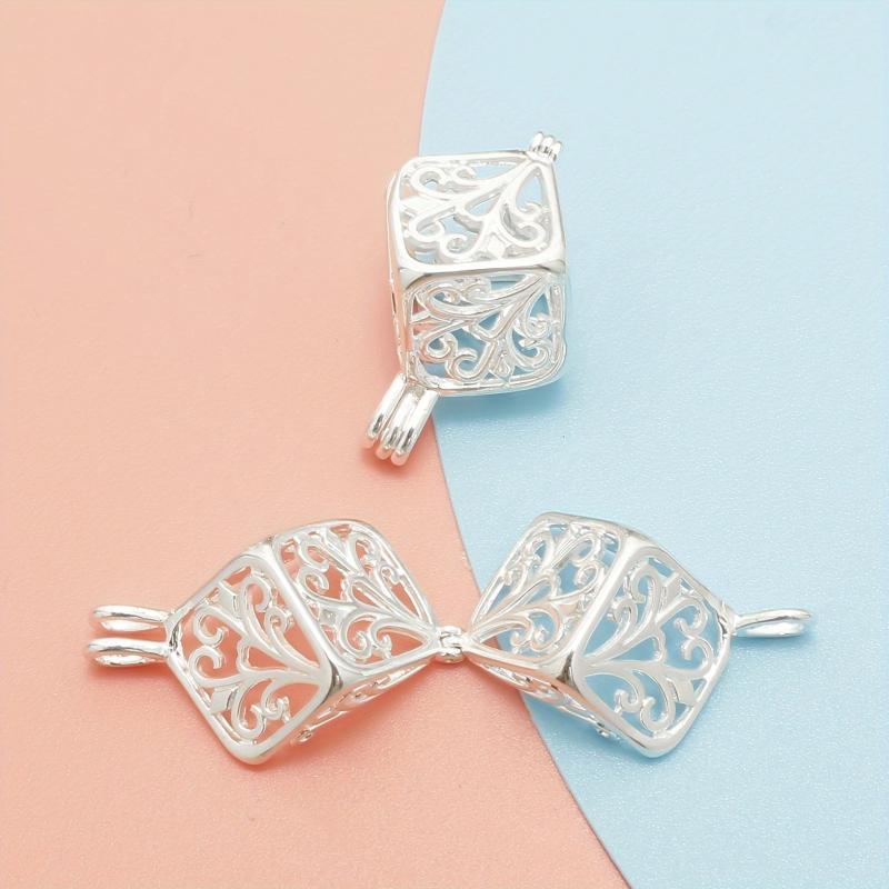 Enhance your style with these 2 cube pearl cage necklace pendants that also function as aroma diffusers. Add your own pearl stone to make them even more appealing.