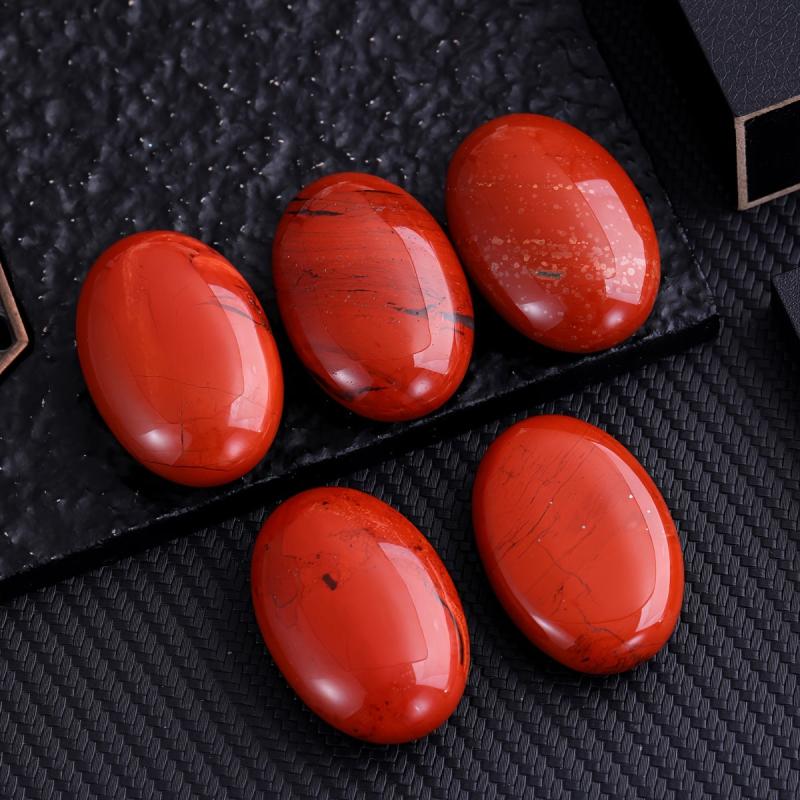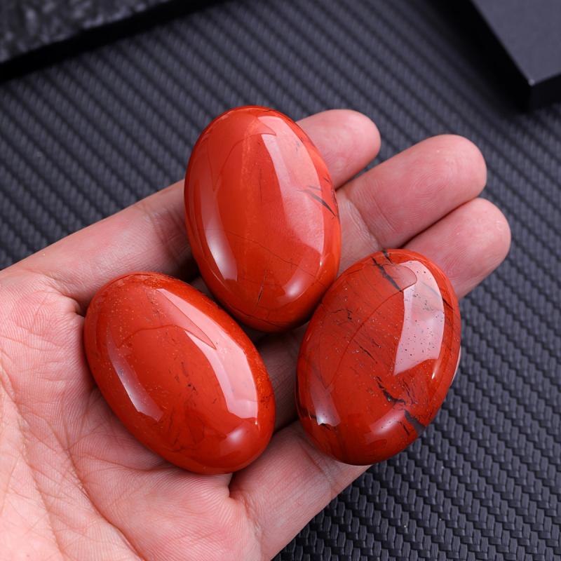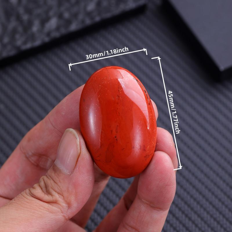 Enhance your home decor with these beautiful natural redstone palm stones. Each stone is polished to perfection, making them ideal for meditation or simply adding a touch of nature to your space.