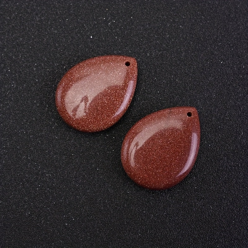 These 2pcs teardrop pendants are made of natural stone in vibrant colors such as red, orange, green, purple, and golden. They make a unique boho charm ideal for family and friends. Each pendant measures 33x25mm.