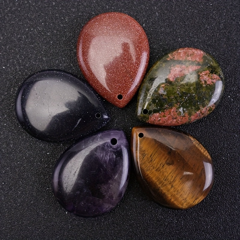 • 2pcs natural stone teardrop pendants in vibrant colors