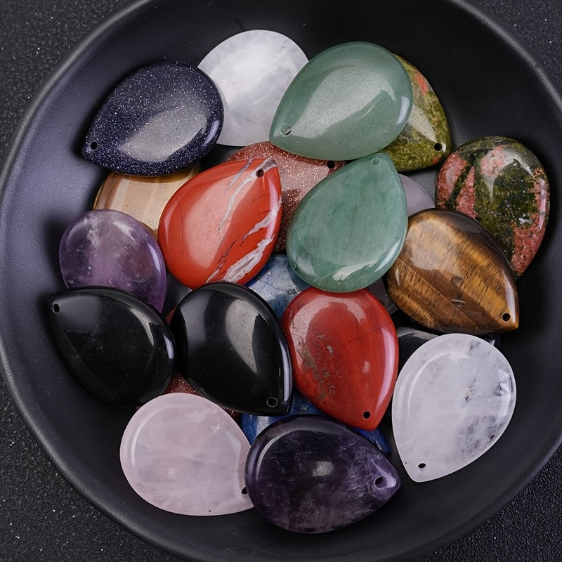 2pcs Natural Stone Teardrop Pendants Boho Charms Vibrant Colors - Ideal Gift