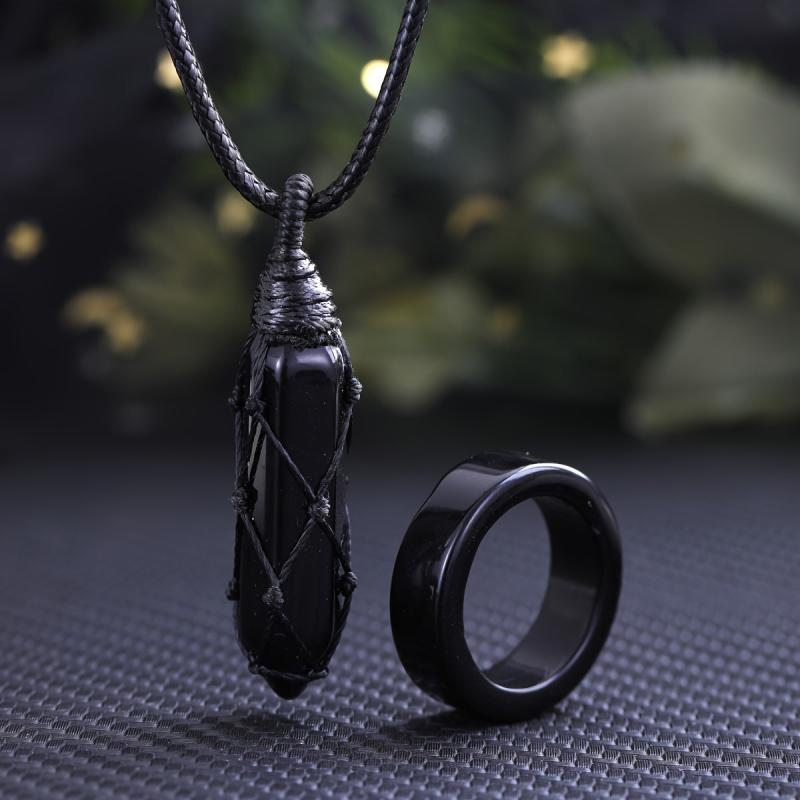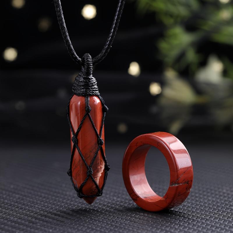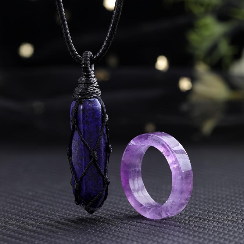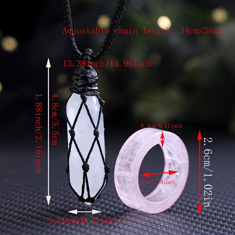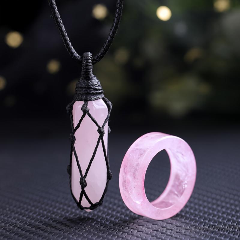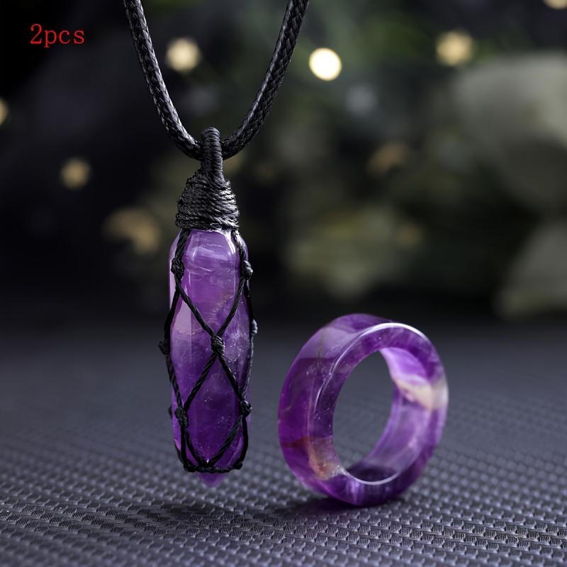 This set includes a beautiful purple crystal pink quartz hexagonal column necklace and ring. Made of natural crystals for a unique and stylish accessory.
