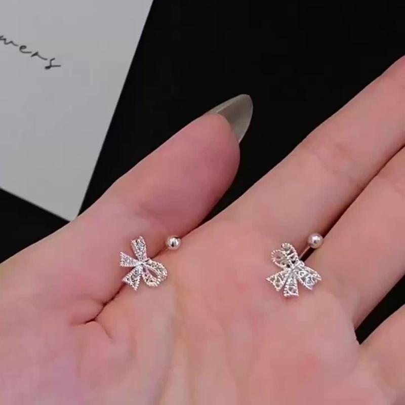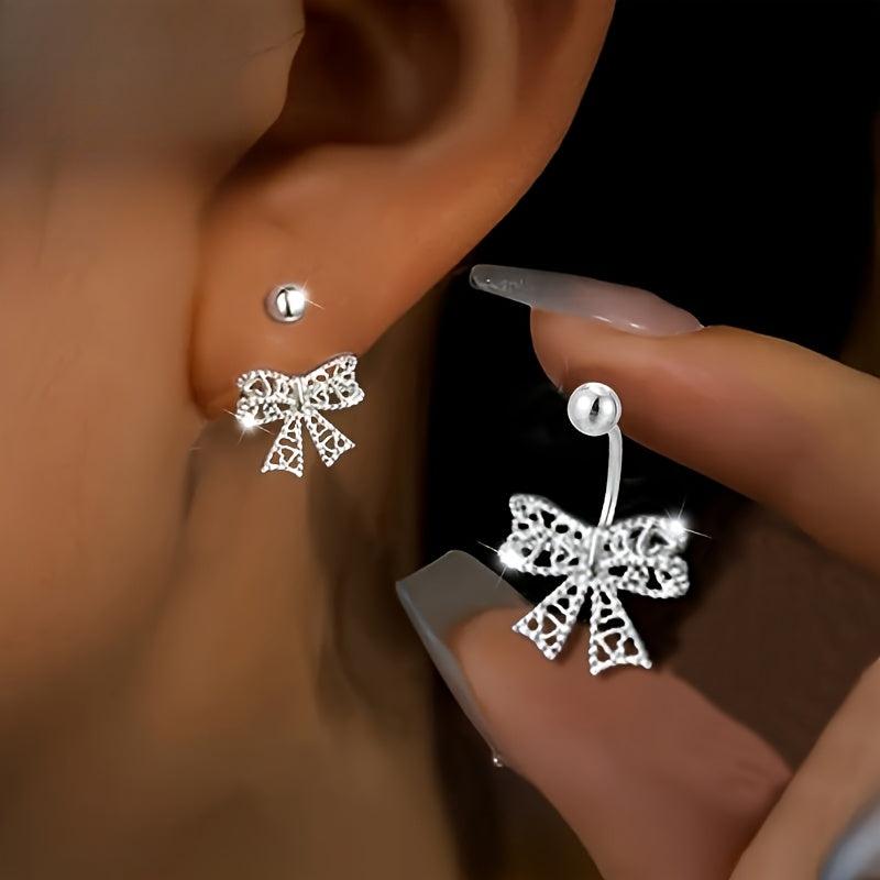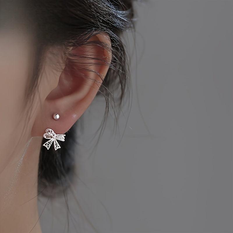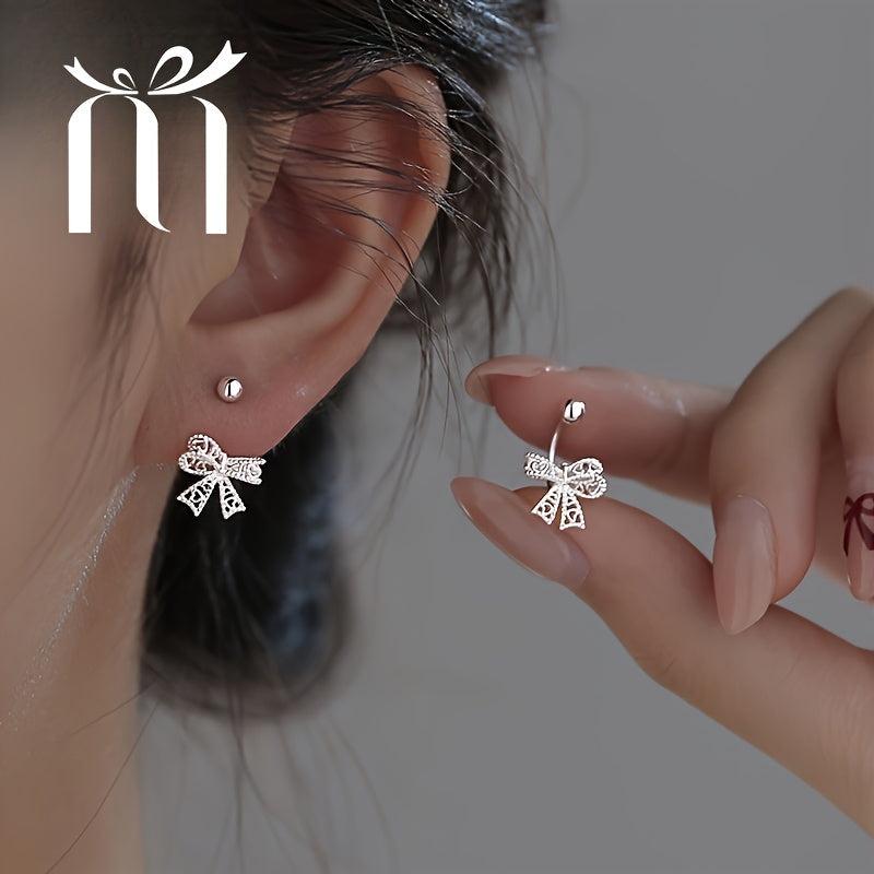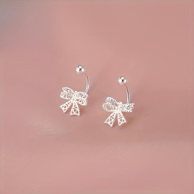 These stylish bow earrings are made of s925 silver and feature a unique curved hook design. They are hypoallergenic and lightweight, making them comfortable to wear all day long. A perfect gift choice for women.