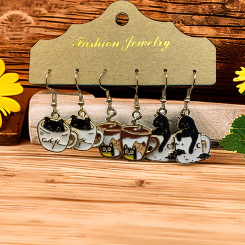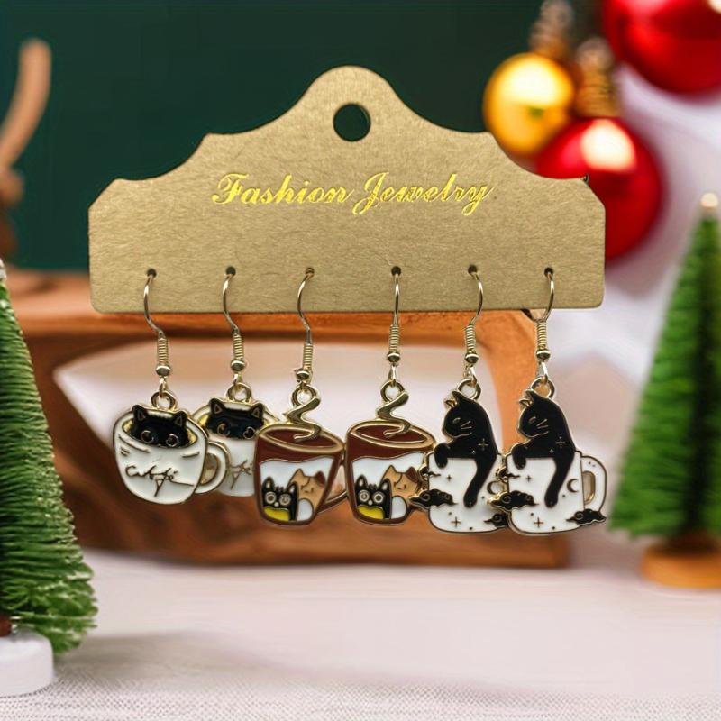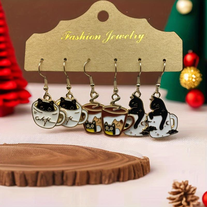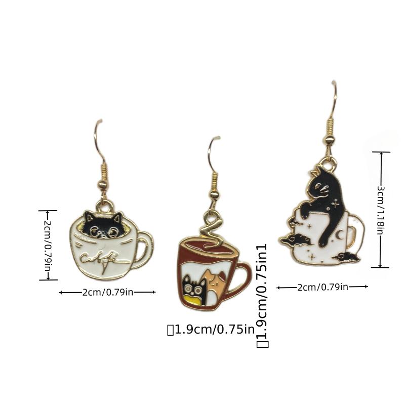 These adorable enamel coffee cup cat dangle earrings are the perfect gift for any female. Their classic style adds charm to any outfit.