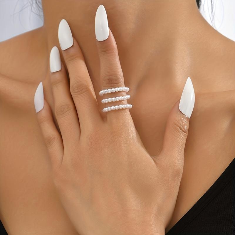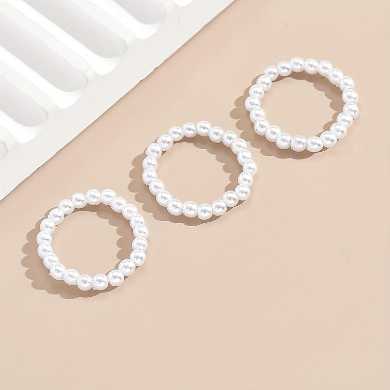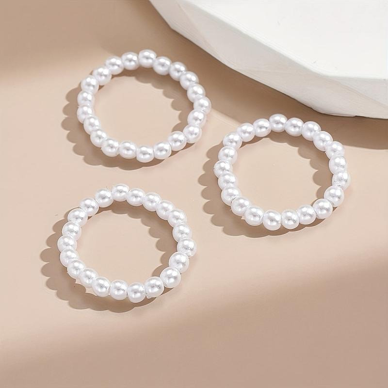 Elegant elastic rings with faux pearls and acrylic. Perfect for all seasons.