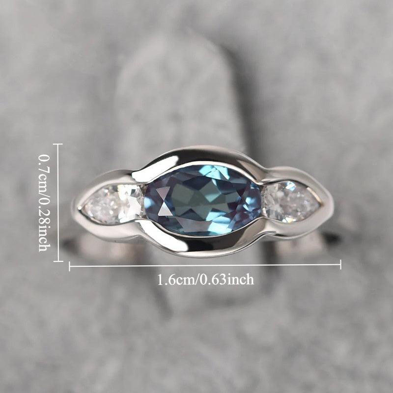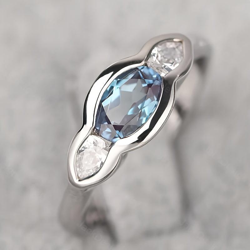 This stunning 3 stone engagement ring features synthetic sapphire and gemstones on a golden plated band, ideal for weddings and special occasions.