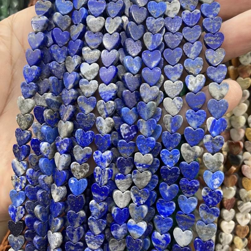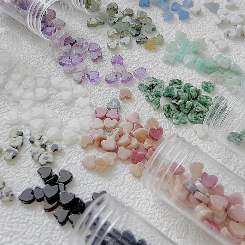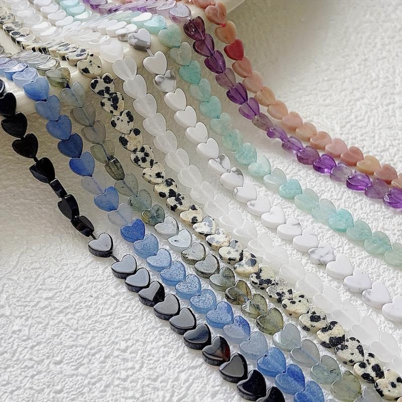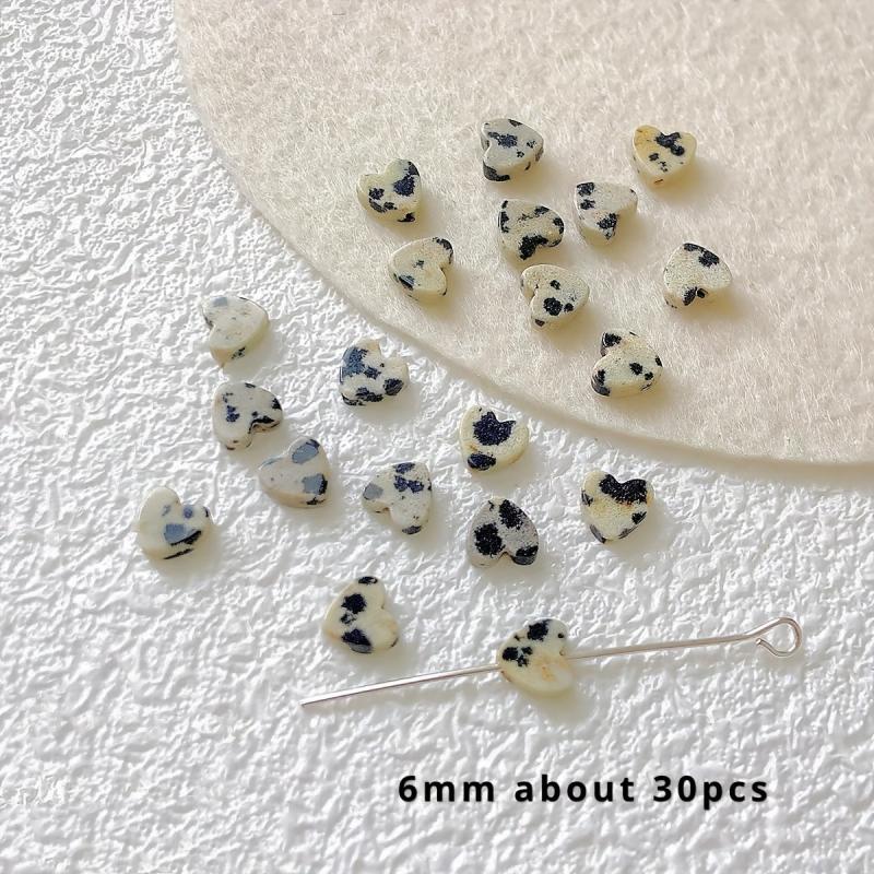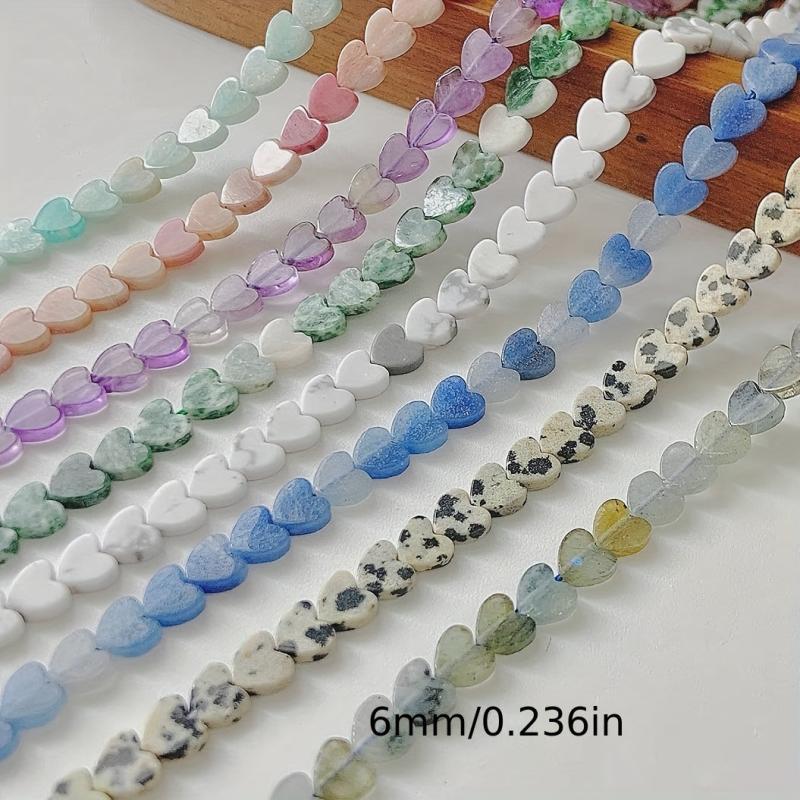 Create unique jewelry pieces with this set of 30 small 6mm flat heart natural stone beads. Perfect for making bracelets, necklaces, and other accessories. Includes tiger's eye and rose quartz beads with spots.